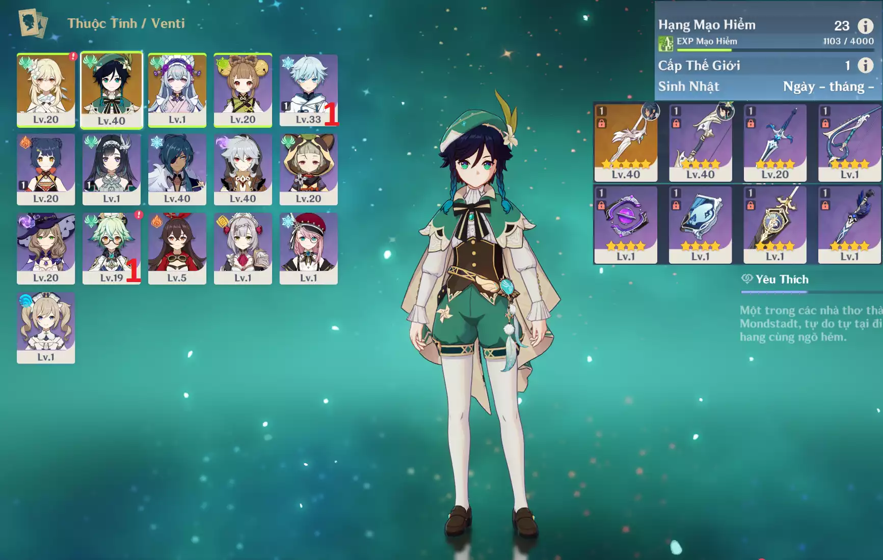 #360540 300,000đ 300,000đ AR level 23 Khu Vực asia Tướng 5* 2 Ar23 : Venti + Mizuki + PƯK _ banner nhân vật 2 trang ( chưa set user + sinh nhật ) _ map zin 99% Tướng : 2 Vũ khí : 1 Chi tiết