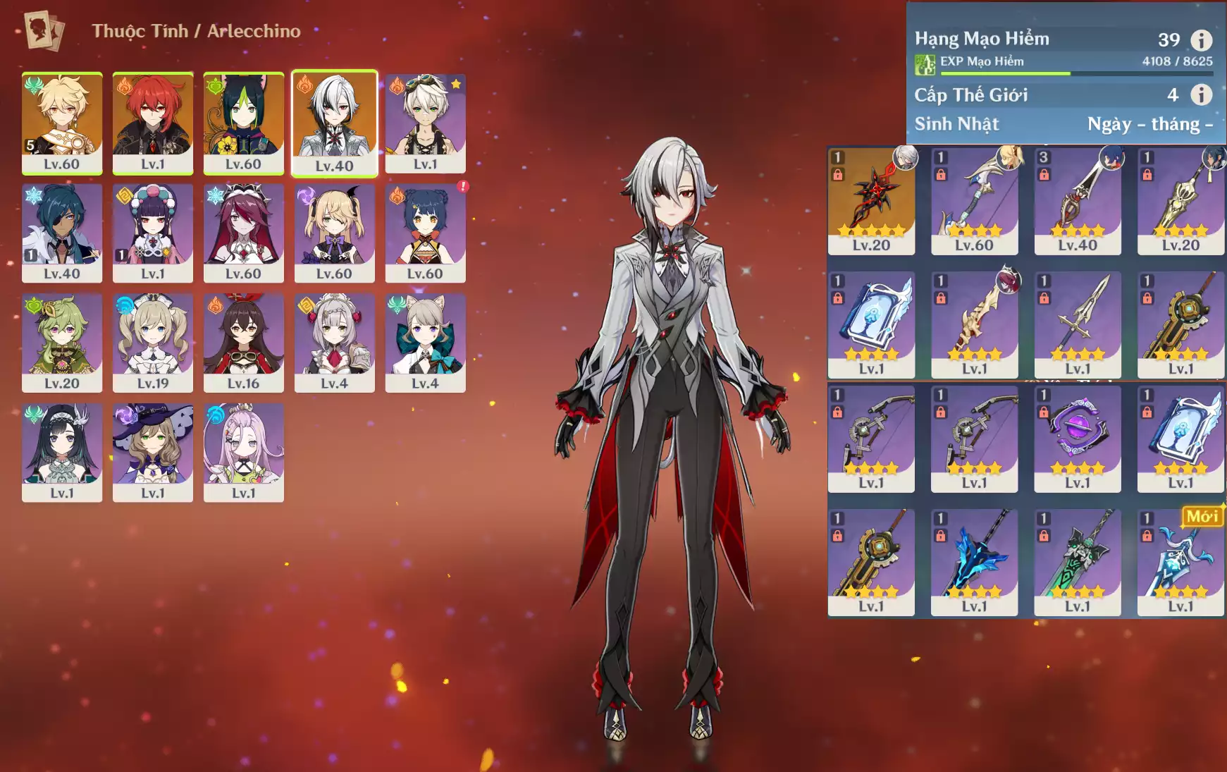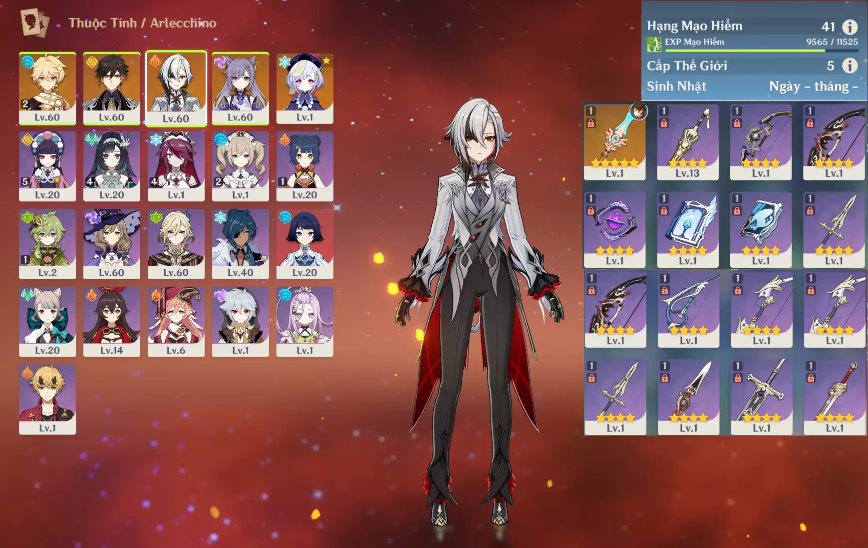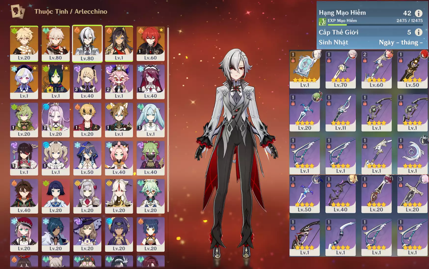 #360523 499,000đ 499,000đ AR level 41 Khu Vực asia Tướng 5* 4 Ar41 : Arlecchino + Zhongli*XSTK + Keqing + QiQi _ banner nhân vật ĐÃ LỆCH 70/90 lần + 10 roll hồng - sure kèo 1 char limted ( chưa set user + sinh nhật ) Tướng : 4 Vũ khí : 1 Chi tiết