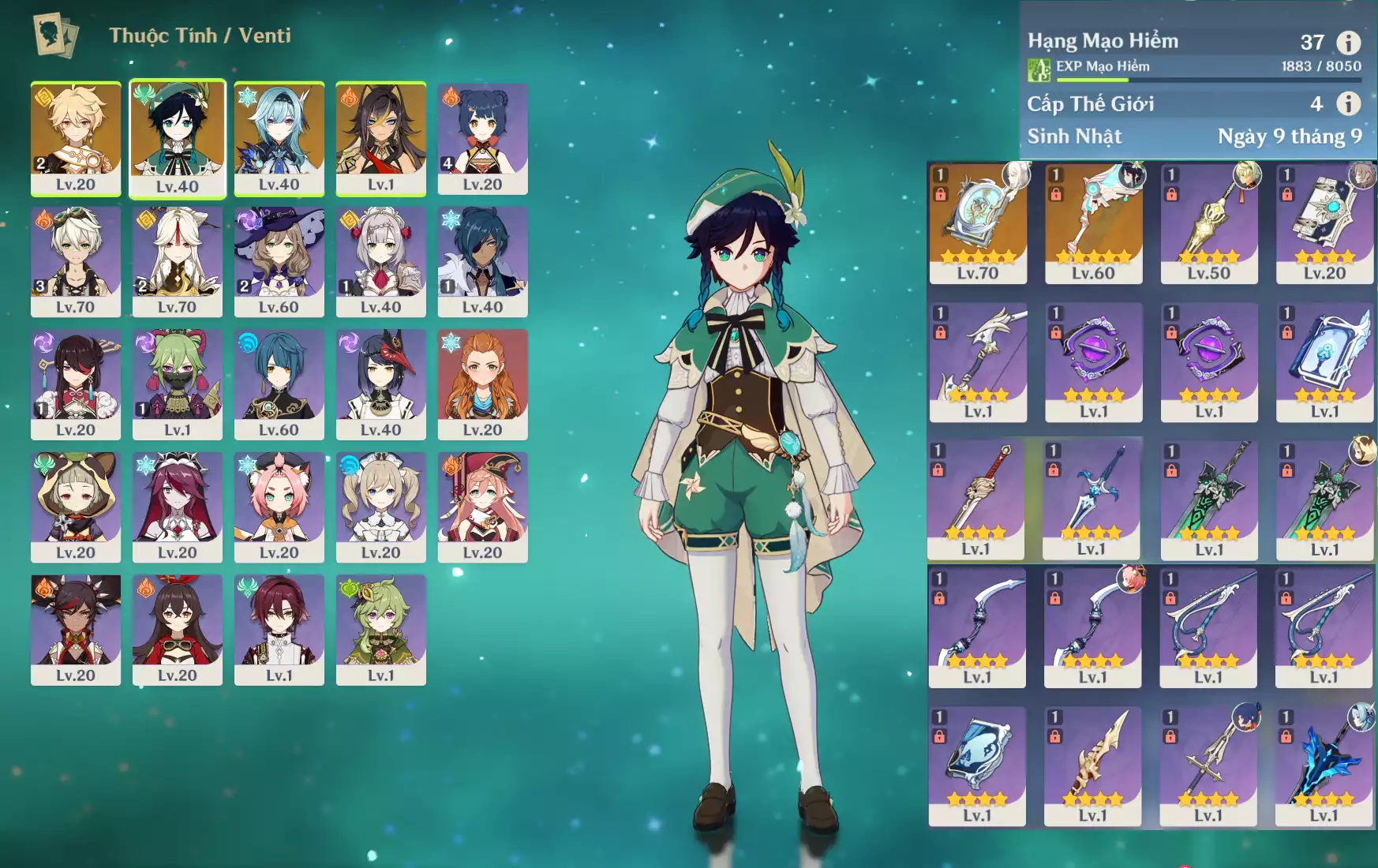 #360535 449,000đ 449,000đ AR level 37 Khu Vực asia Tướng 5* 3 Ar37 : Venti * CTK + Eula + Dehya + ĐTTP _ banner nhân vật 2 trang ( chưa set user ) _ map zin 95% Tướng : 3 Vũ khí : 2 Chi tiết