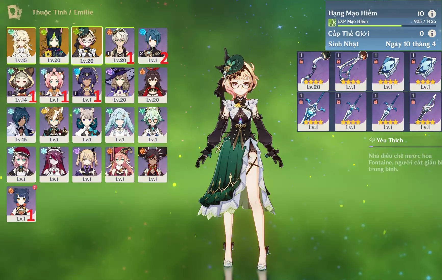 #360513 349,000đ 349,000đ AR level 10 Khu Vực asia Tướng 5* 2 Ar10 : Emilie + Tighnari _ banner nhân vật 20/90 ( chưa set user ) Tướng : 2 Vũ khí : 0 Chi tiết