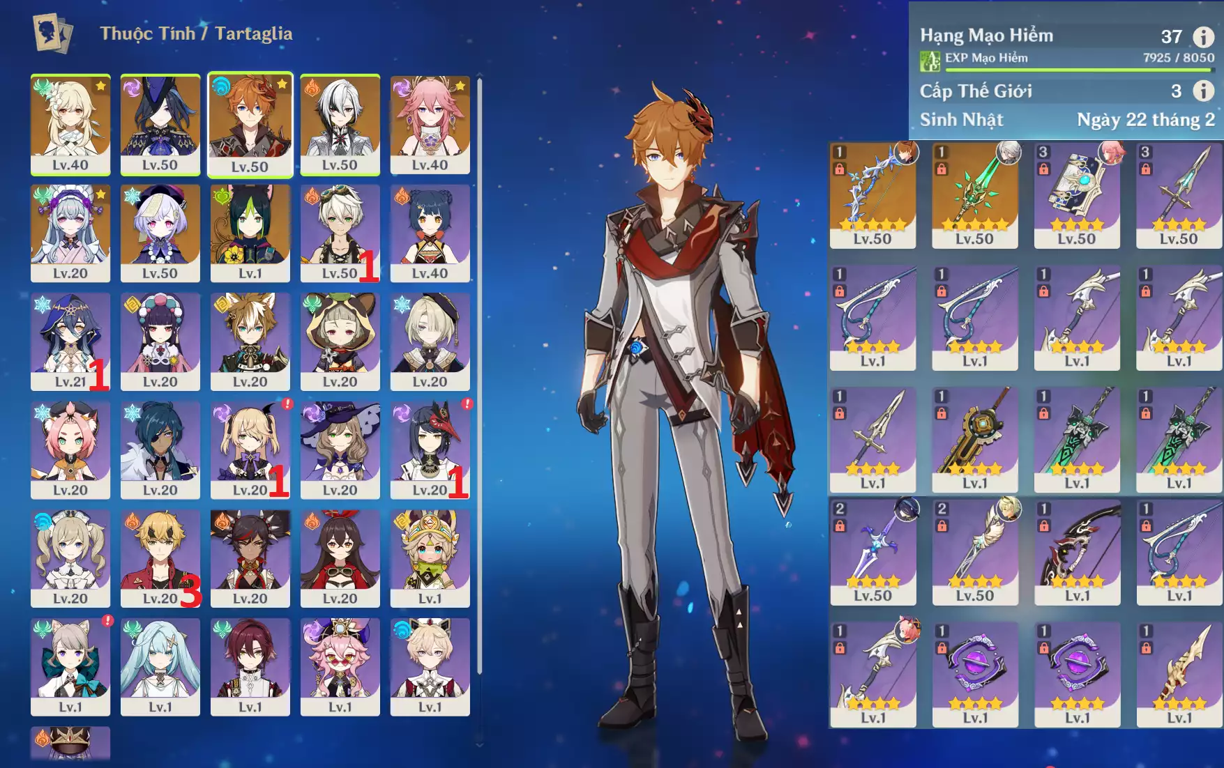 Siêu phẩm Ar10: Char hot Skirk + Xianyun Trấn DATH* + Furina + Nahida + jeanc1 tighnari bennetC2 HD* ( banner vũ khí ĐÃ ĐỊNH CHUẨN 3 trang cày sure trấn Skirk ) , chưa set mail _ chưa set sinh nhật