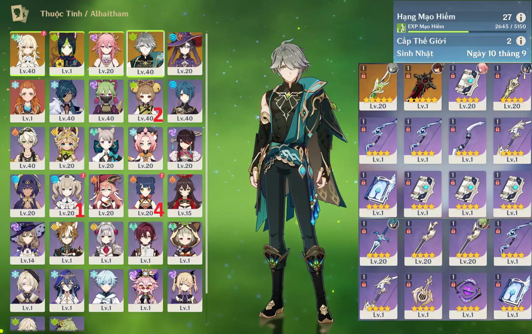 #356398 1,000,000đ 1,000,000đ AR level 27 Khu Vực asia Tướng 5* 4 Ar27: Alhaitham + Trấn ( ALPQ ) + Yaemiko + Tighnari + Mona + đccs _ banner nhân vật 60/90 _ map zin 99% Tướng : 4 Vũ khí : 2 Chi tiết