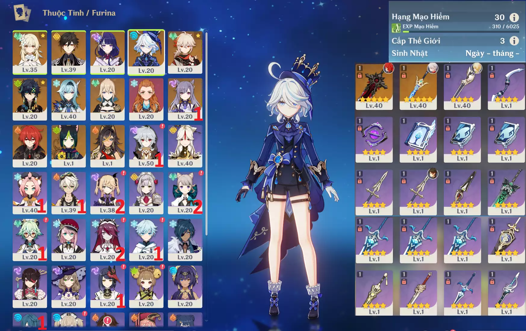 #356454 599,000đ 599,000đ AR level 34 Khu Vực asia Tướng 5* 5 Ar34 : Flins + Raidenshogun-baal + DilucC1 + Tighnari _ banner nhân vật 1 trang ( acc trắng thông tin _ chưa email + sinh nhật ) map zin hơn 95% Tướng : 5 Vũ khí : 0 Chi tiết