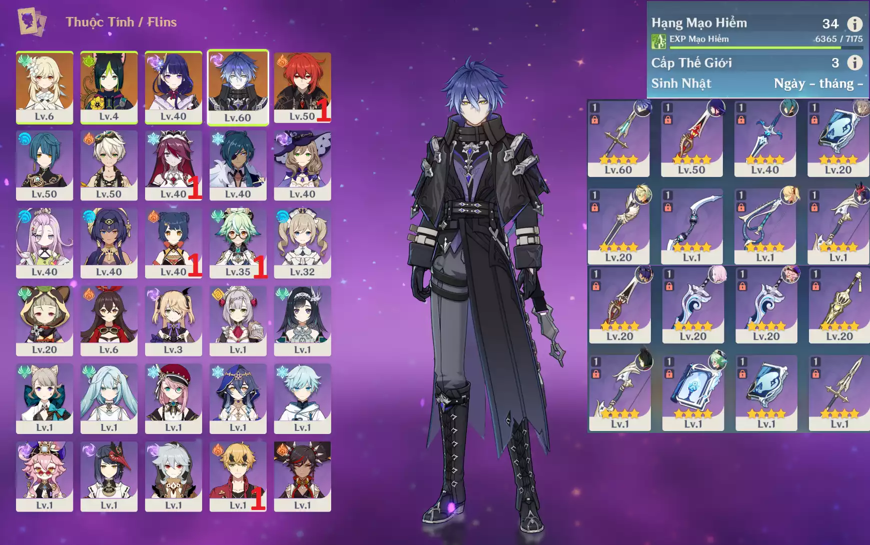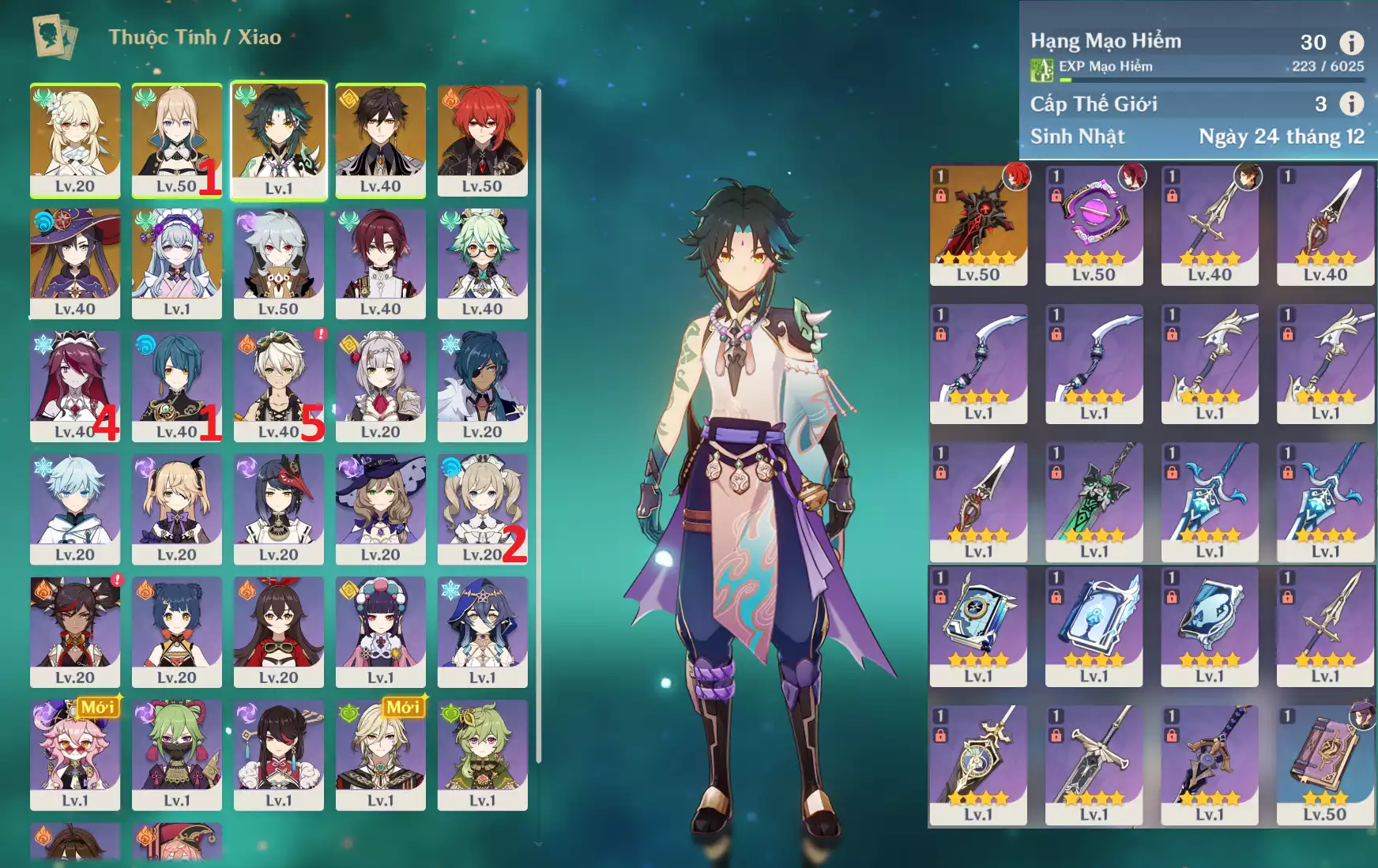#356390 699,000đ 699,000đ AR level 30 Khu Vực asia Tướng 5* 8 Ar30 : Zhongli + Xiao + Diluc * Trấn ( ĐCCS ) + JeanC1 + Mizuki _ bennetC5 xingqiuC1 _ banner nhân vật 30/90 _ map zin 99% Tướng : 8 Vũ khí : 1 Chi tiết