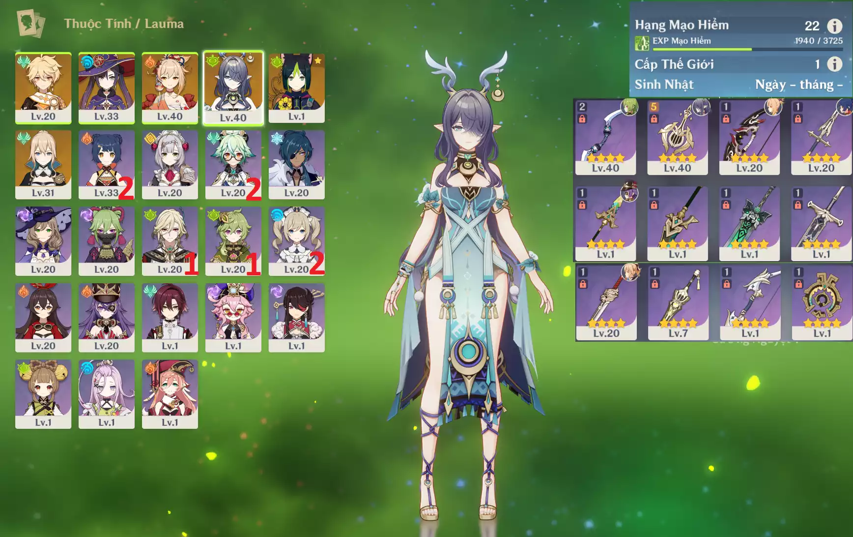 #356449 699,000đ 699,000đ AR level 22 Khu Vực asia Tướng 5* 5 Ar22 : Lauma + Yoimiya + Tighnari + Mona + Jean _ banner nhân vật ĐÃ LỆCH 20/90 lần ( chưa set sinh nhật ) _ đã user Tướng : 5 Vũ khí : 0 Chi tiết
