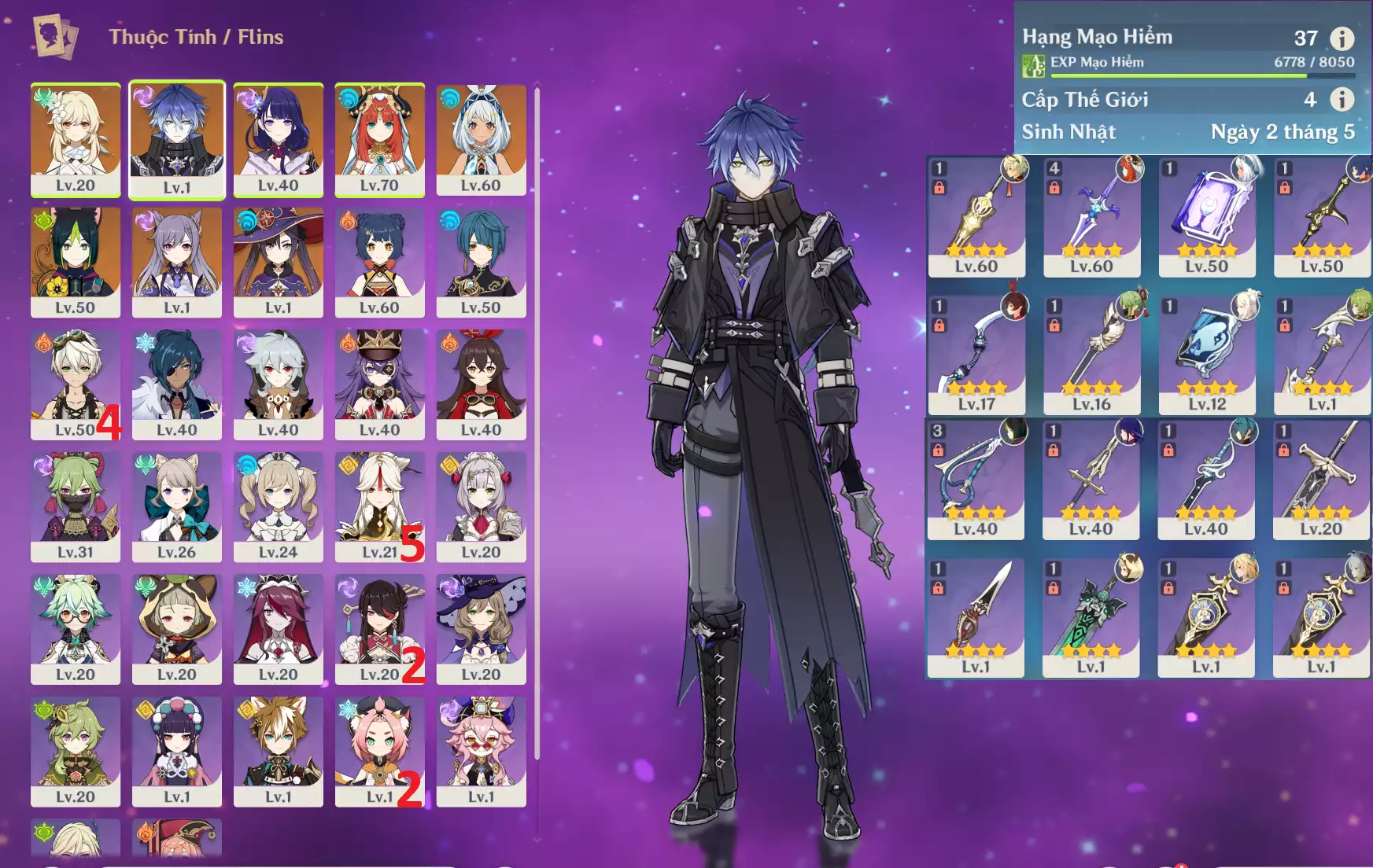 #356452 899,000đ 899,000đ AR level 37 Khu Vực asia Tướng 5* 6 Ar37 : Flins + Raidenshogun-baal + Nilou + Mualali + Mona + Keqing + Tighnari _ banner nhân vật 2 trang _ map zin hơn 95% Tướng : 6 Vũ khí : 0 Chi tiết