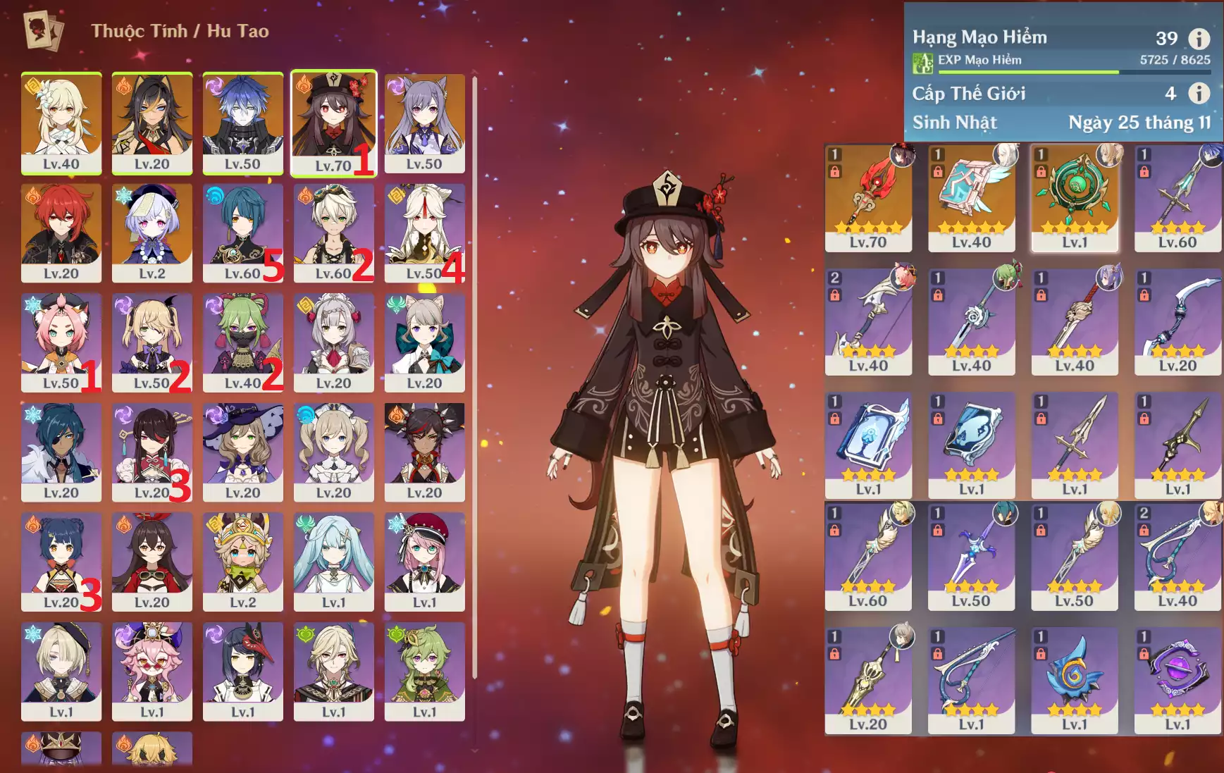 #356455 899,000đ 899,000đ AR level 39 Khu Vực asia Tướng 5* 7 Ar3x : Hutao cung mệnh 1 + Trấn ( Homa ) + Flins + Keqing + QiQi + Dehya + Diluc _ banner nhân vật 2 trang _ map zin hơn 95% Tướng : 7 Vũ khí : 3 Chi tiết