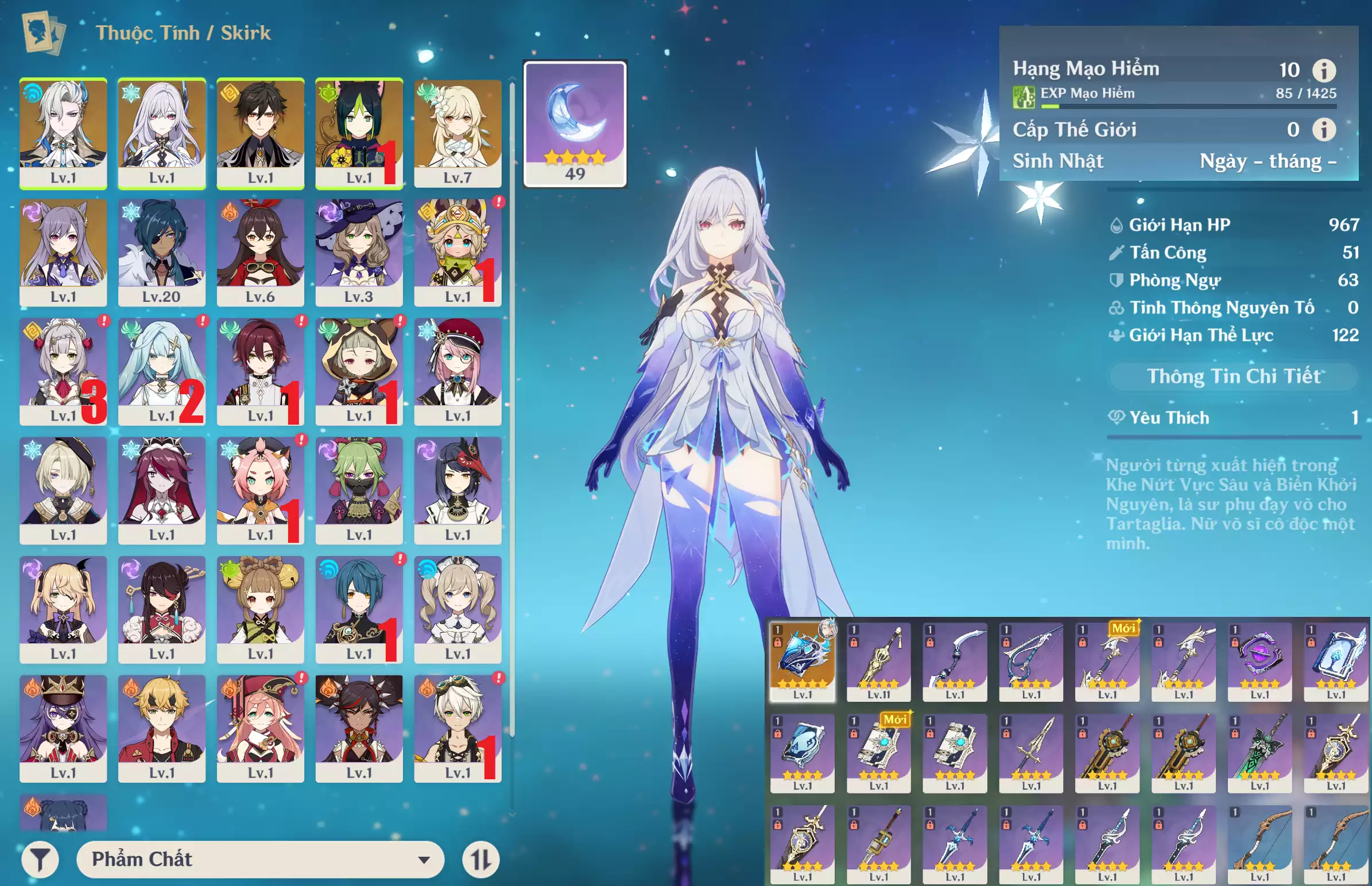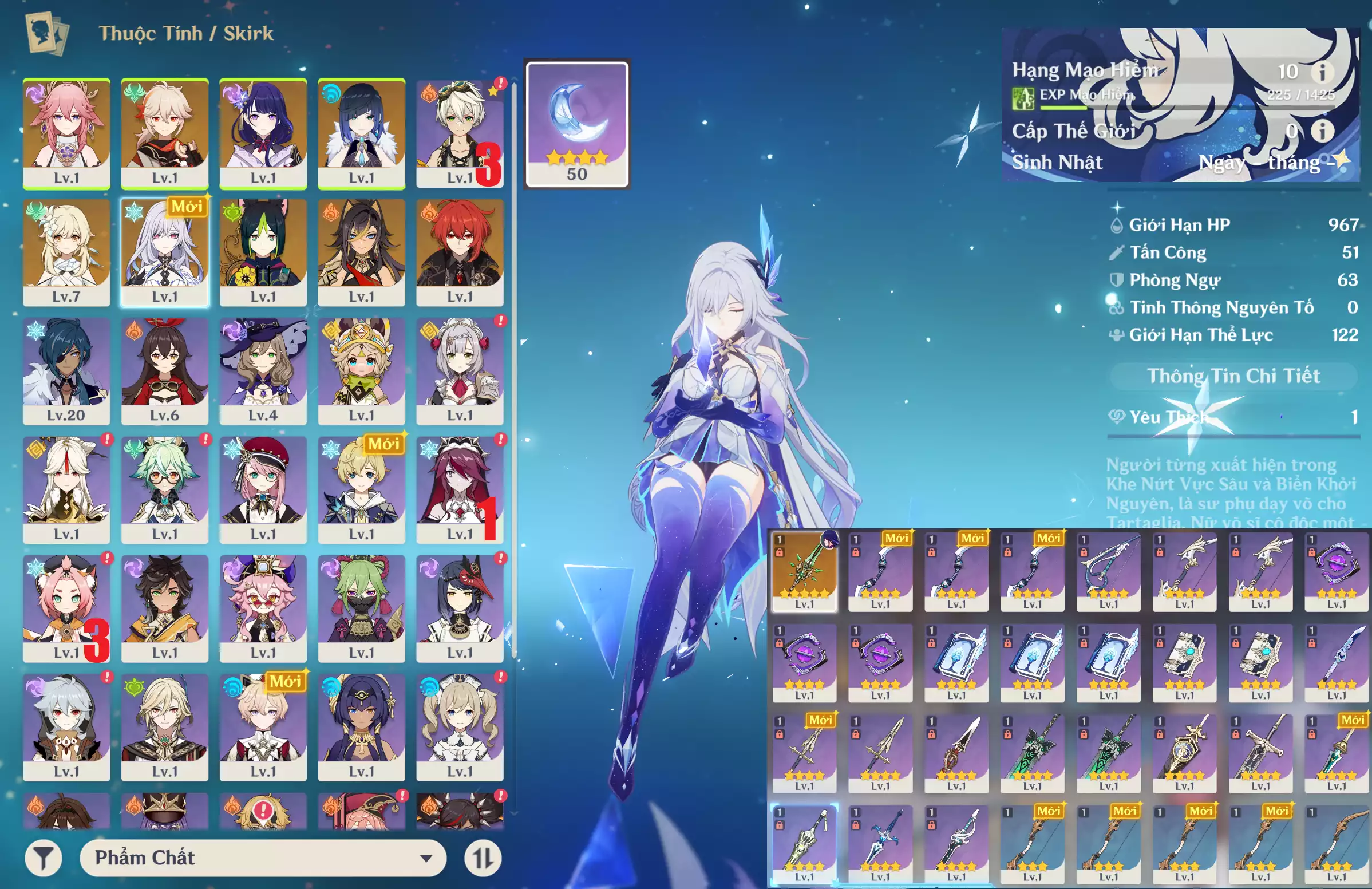 SIÊU PHẨM Ar10: Char mới VESARA + YELAN Trấn Nhược thủy + ARLECCHINO + HUTAO + YAE MIKO + Jean Cm1 TKK* (banner nhân vật ĐÃ LỆCH 10 trang, banner vũ khí 50/80 ) , chưa set sinh nhật , nguồn CN k lo back