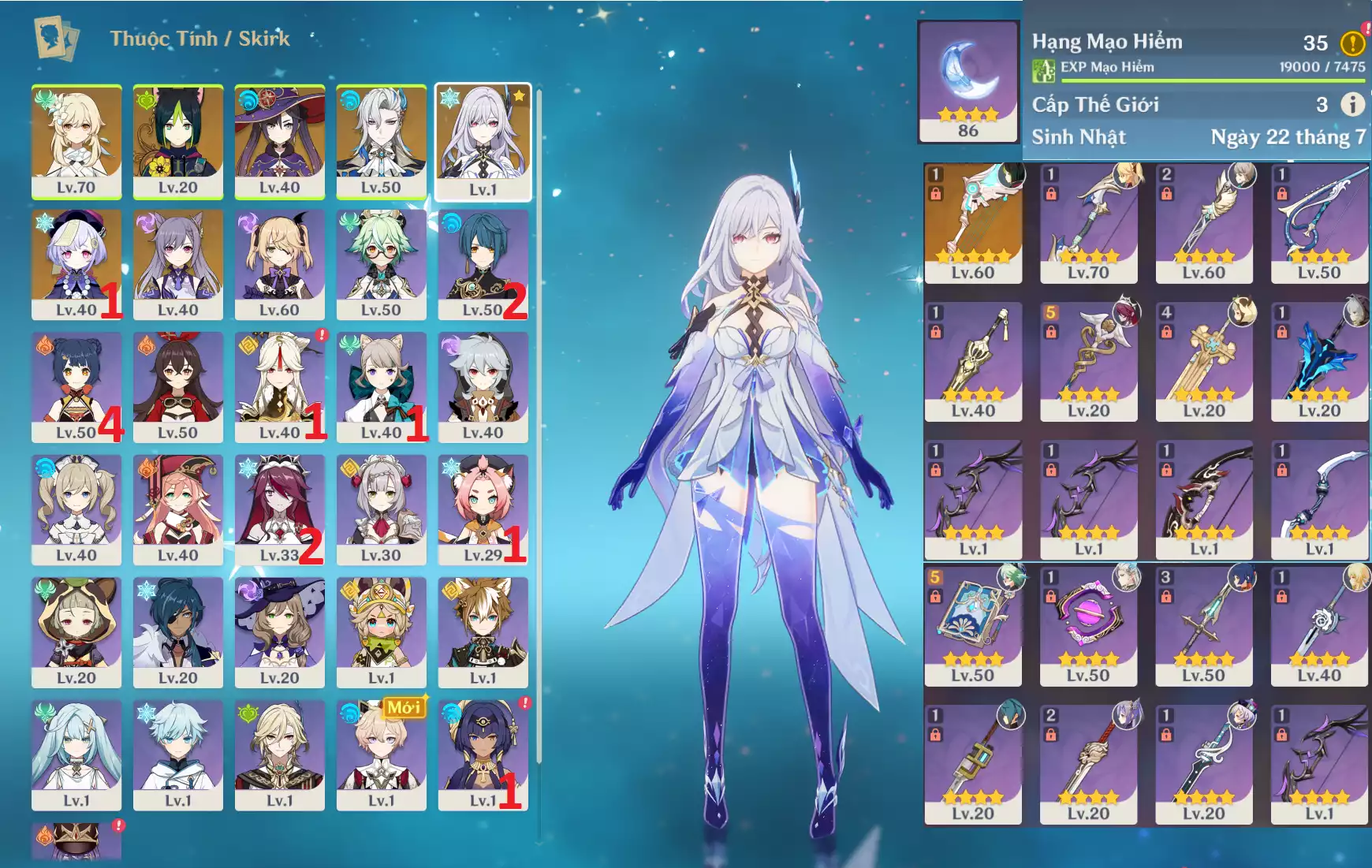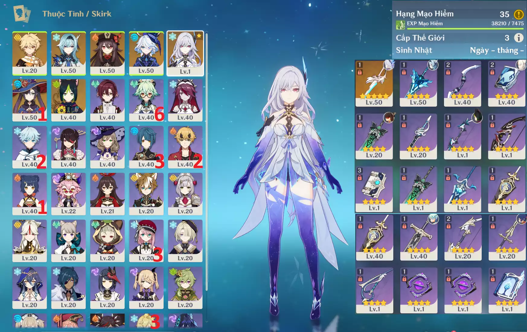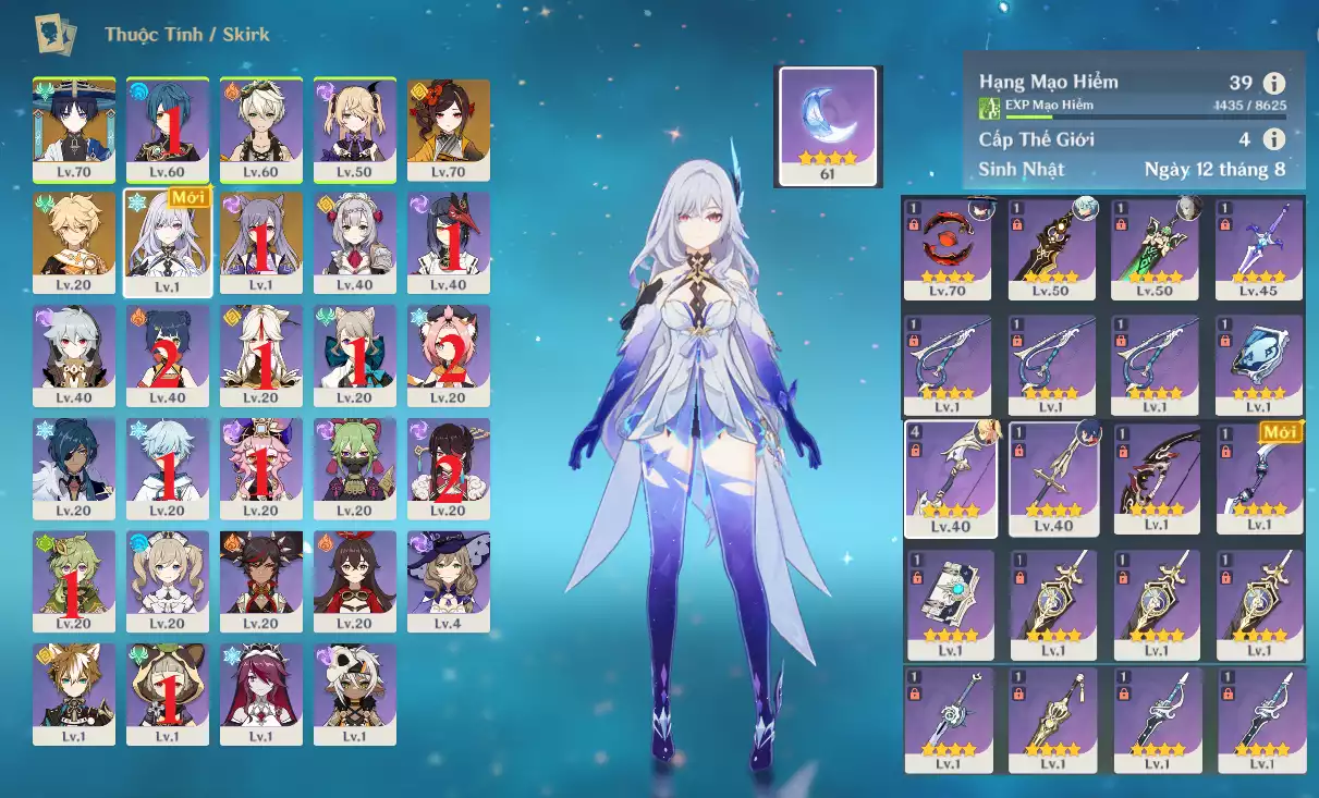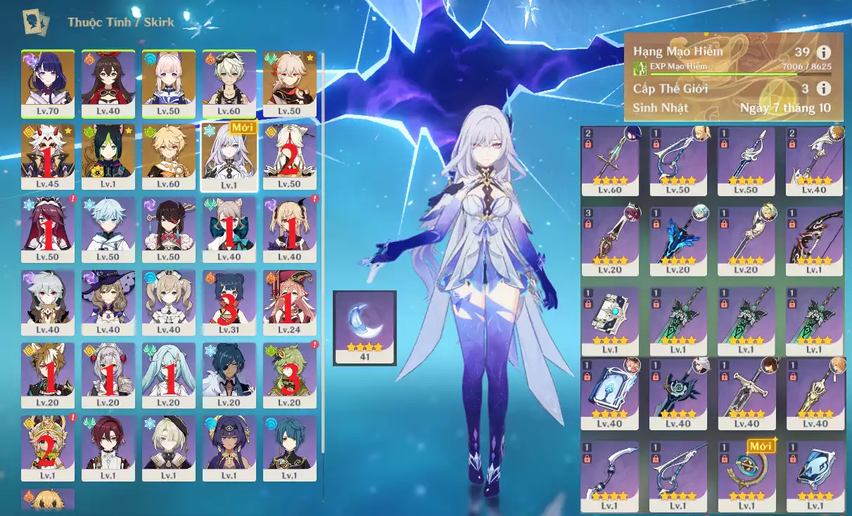 AR3x: Char mới hot Skirk + Raiden Shogun BAAL + KAZUHA + KOKOMI + ITTO Cm1 + Tighnari , banner nhân vật ĐÃ LỆCH Keqing 3 trang , main Nam chưa set user