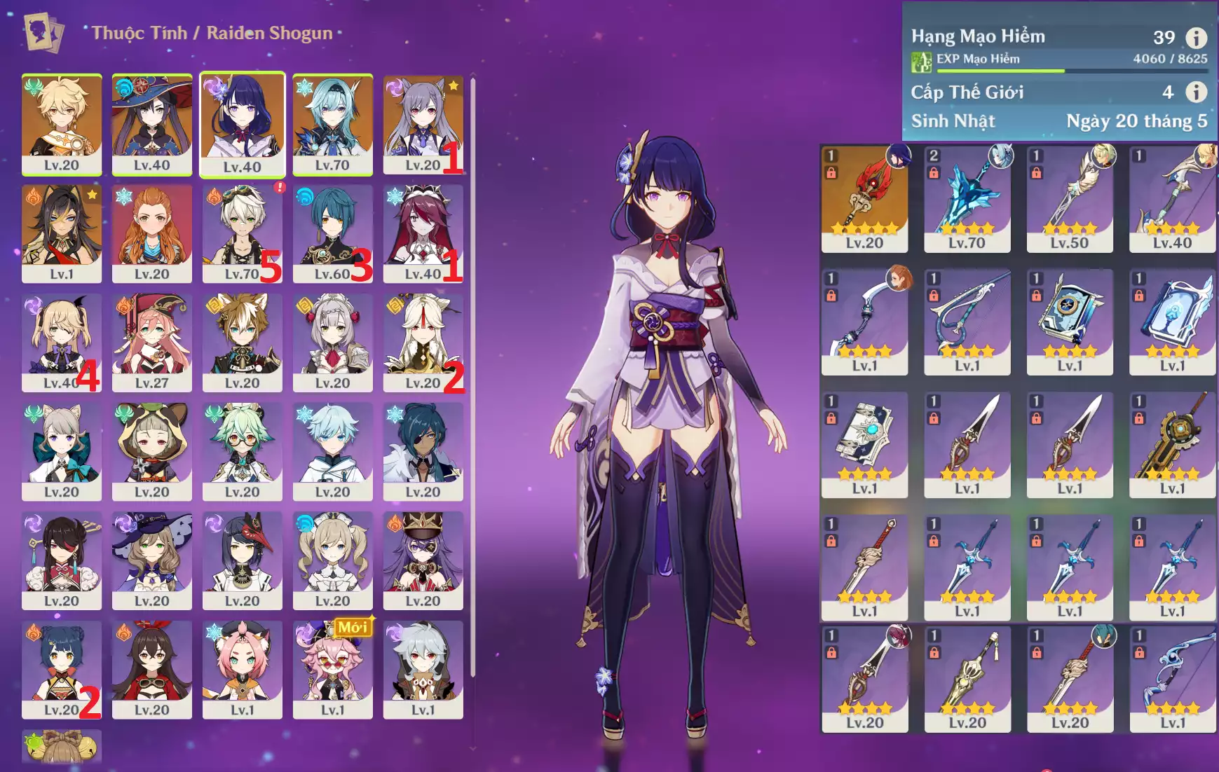 #356382 599,000đ 599,000đ AR level 39 Khu Vực asia Tướng 5* 7 Ar3x : Raidenshogun-baal + Hộ Ma + Eula + Dehya + Mona + KeqingC1 _ banner nhân vật 45/90 ( chưa set user ) _ map zin 99% Tướng : 7 Vũ khí : 1 Chi tiết
