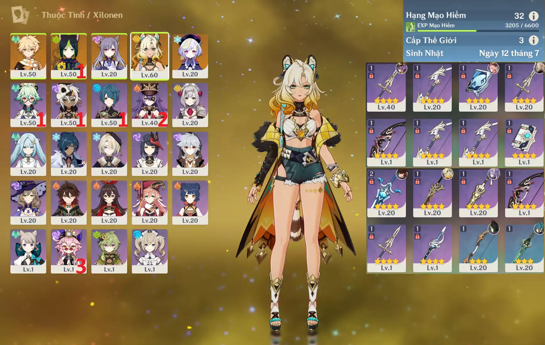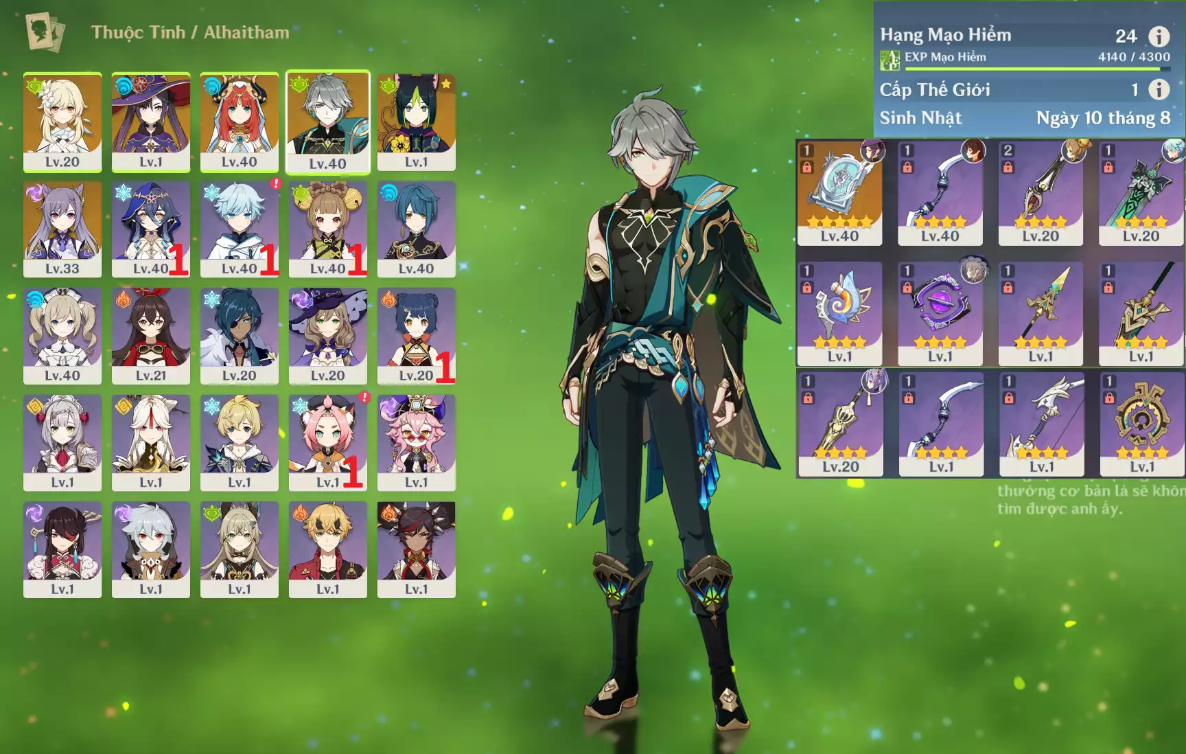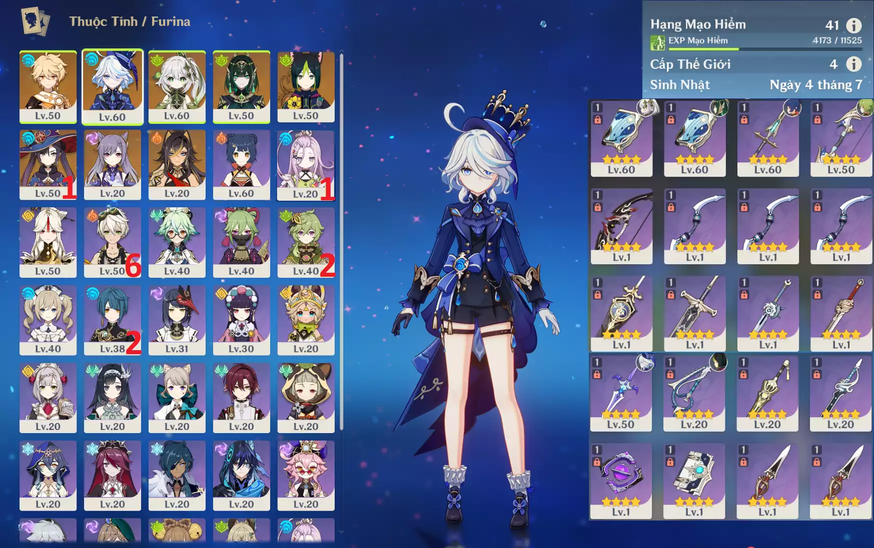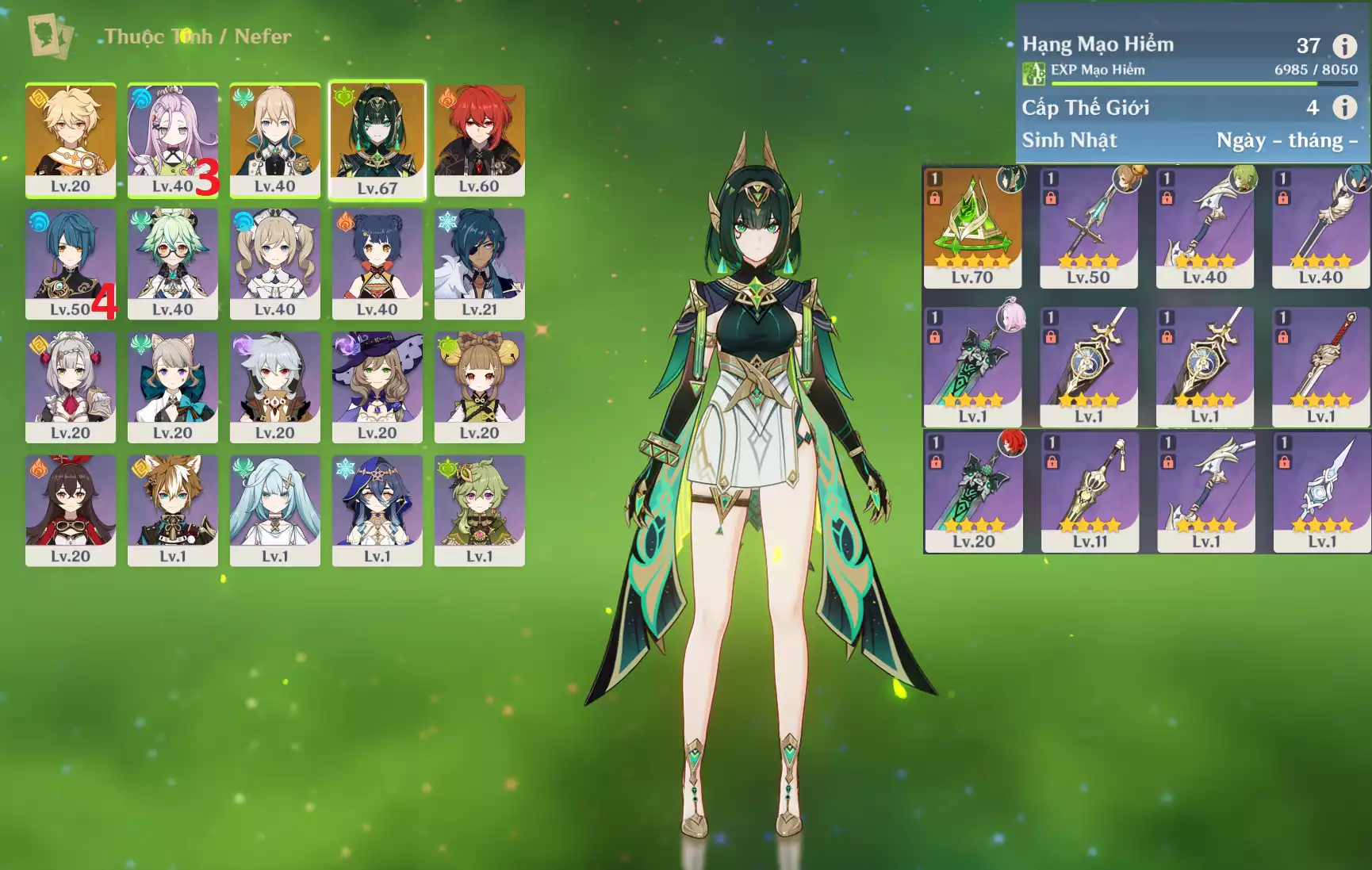 #357639 500,000đ 500,000đ AR level 41 Khu Vực asia Tướng 5* 7 Ar41 : Nefer + Nahida + Furina _ banner nhân vật 1 trang _ map vẫn còn rất nhiều ( quên user ) Tướng : 7 Vũ khí : 0 Chi tiết