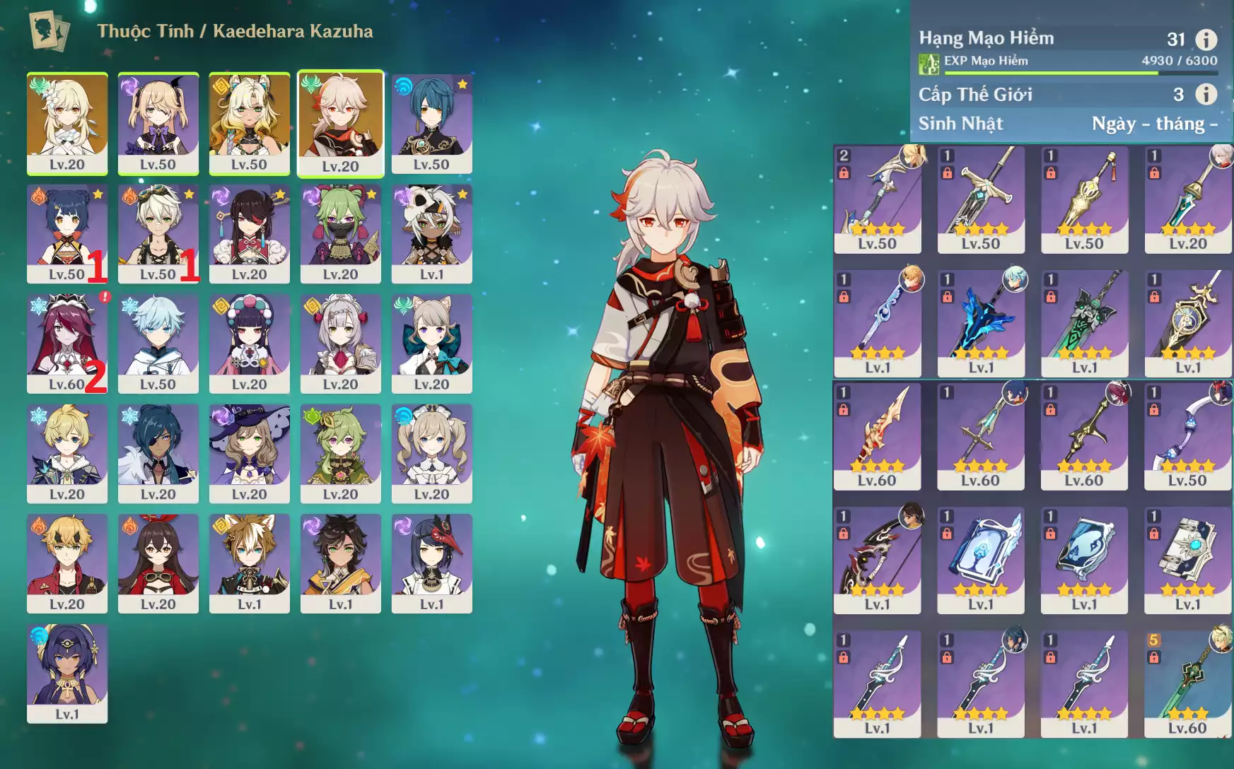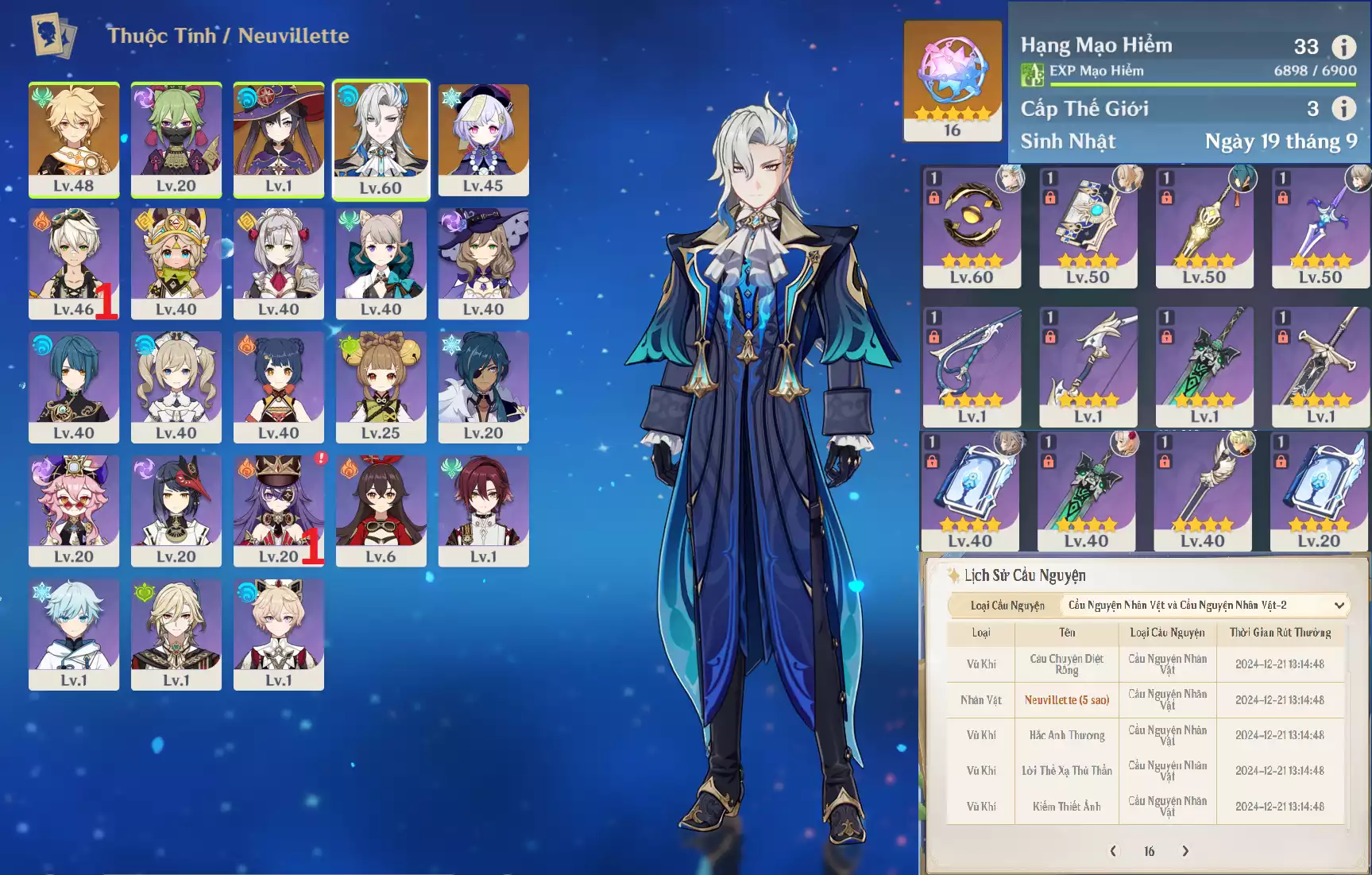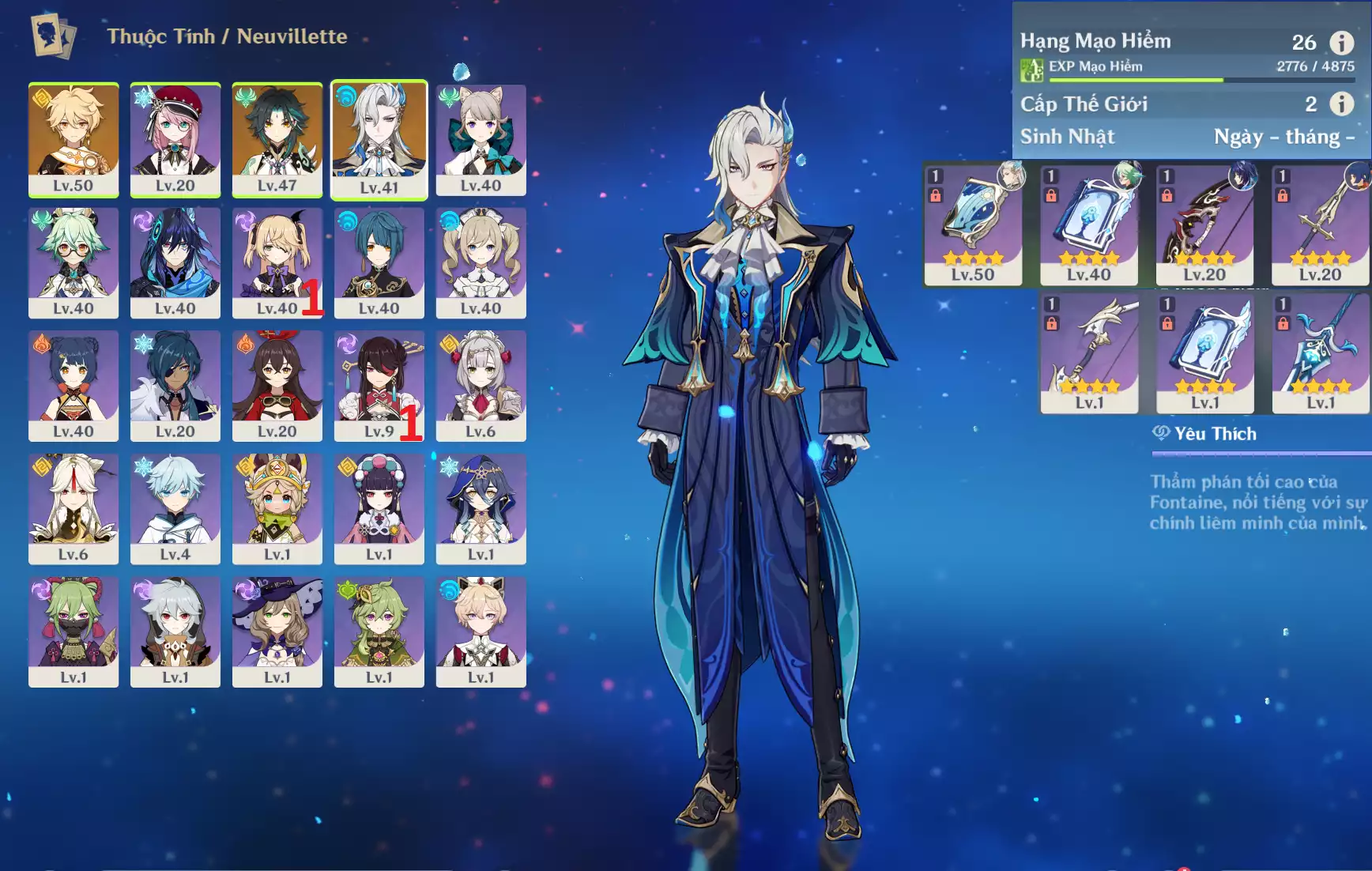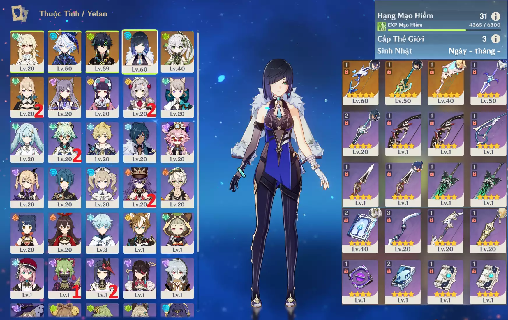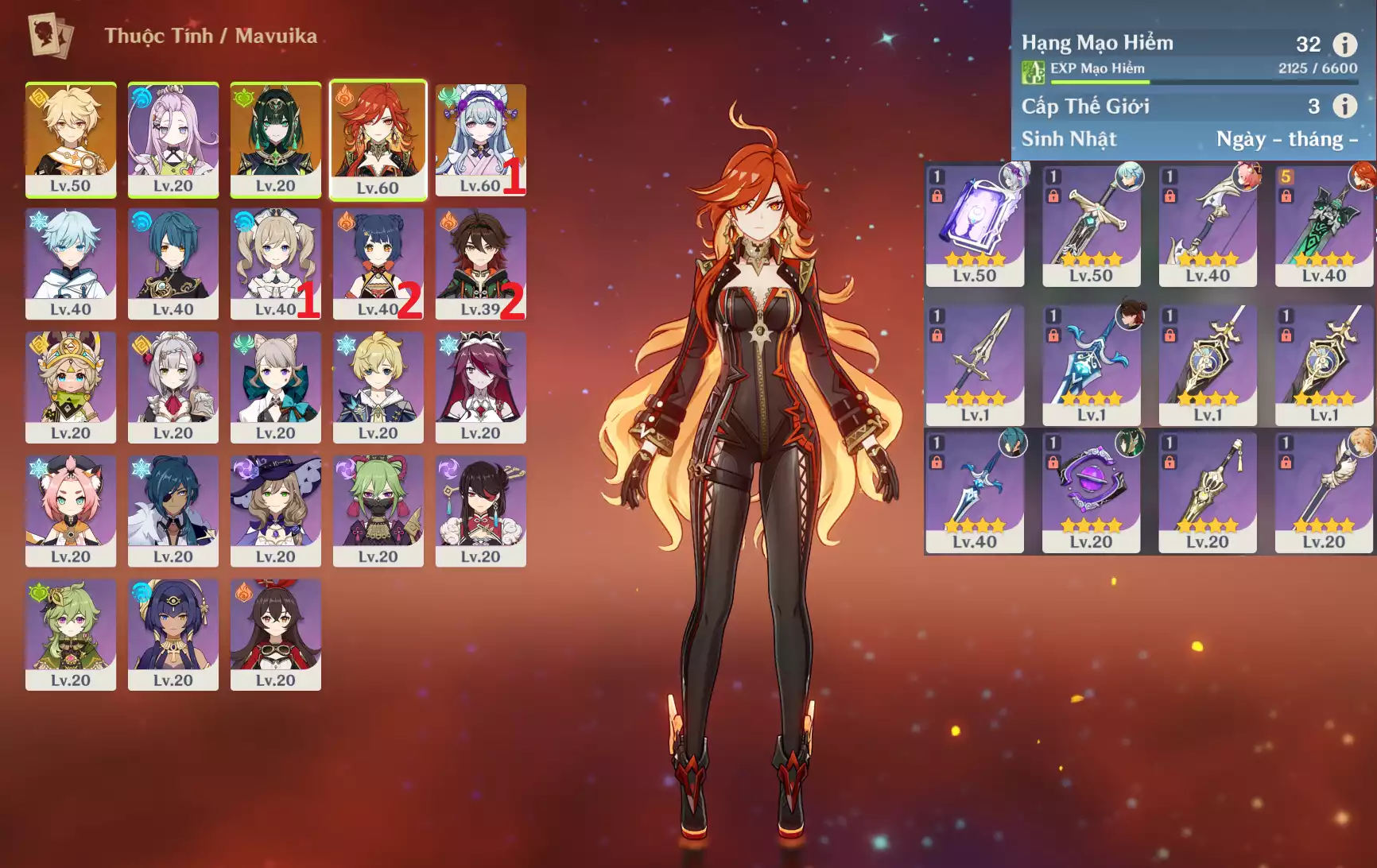 #357639 500,000đ 500,000đ AR level 41 Khu Vực asia Tướng 5* 7 Ar41 : Nefer + Nahida + Furina _ banner nhân vật 1 trang _ map vẫn còn rất nhiều ( quên user ) Tướng : 7 Vũ khí : 0 Chi tiết