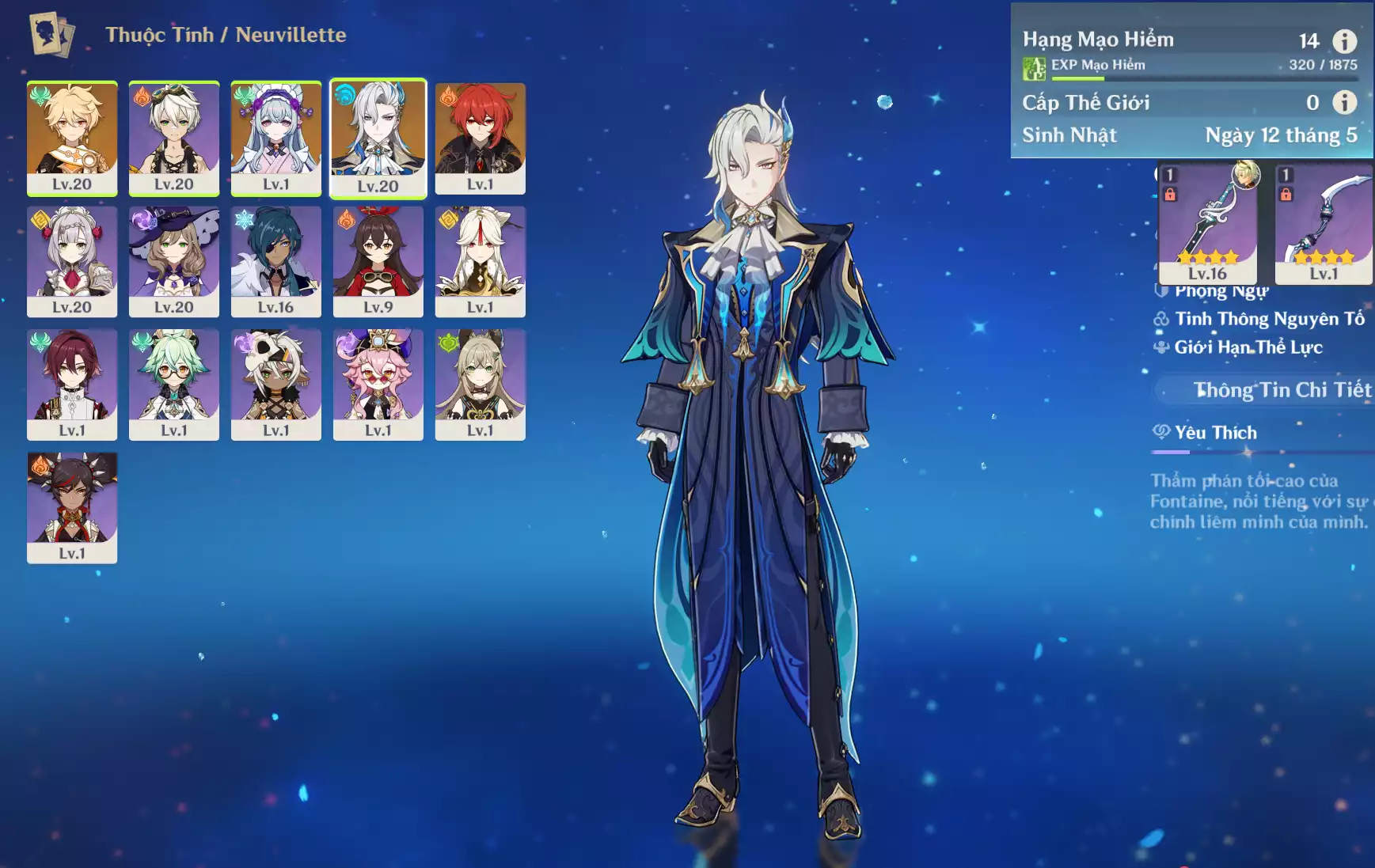 #356387 599,000đ 599,000đ AR level 14 Khu Vực asia Tướng 5* 3 Ar14 : Neuvilltte + Mizuki + Diluc _ banner nhân vật 50/90 ( chưa set user ) Tướng : 3 Vũ khí : 0 Chi tiết