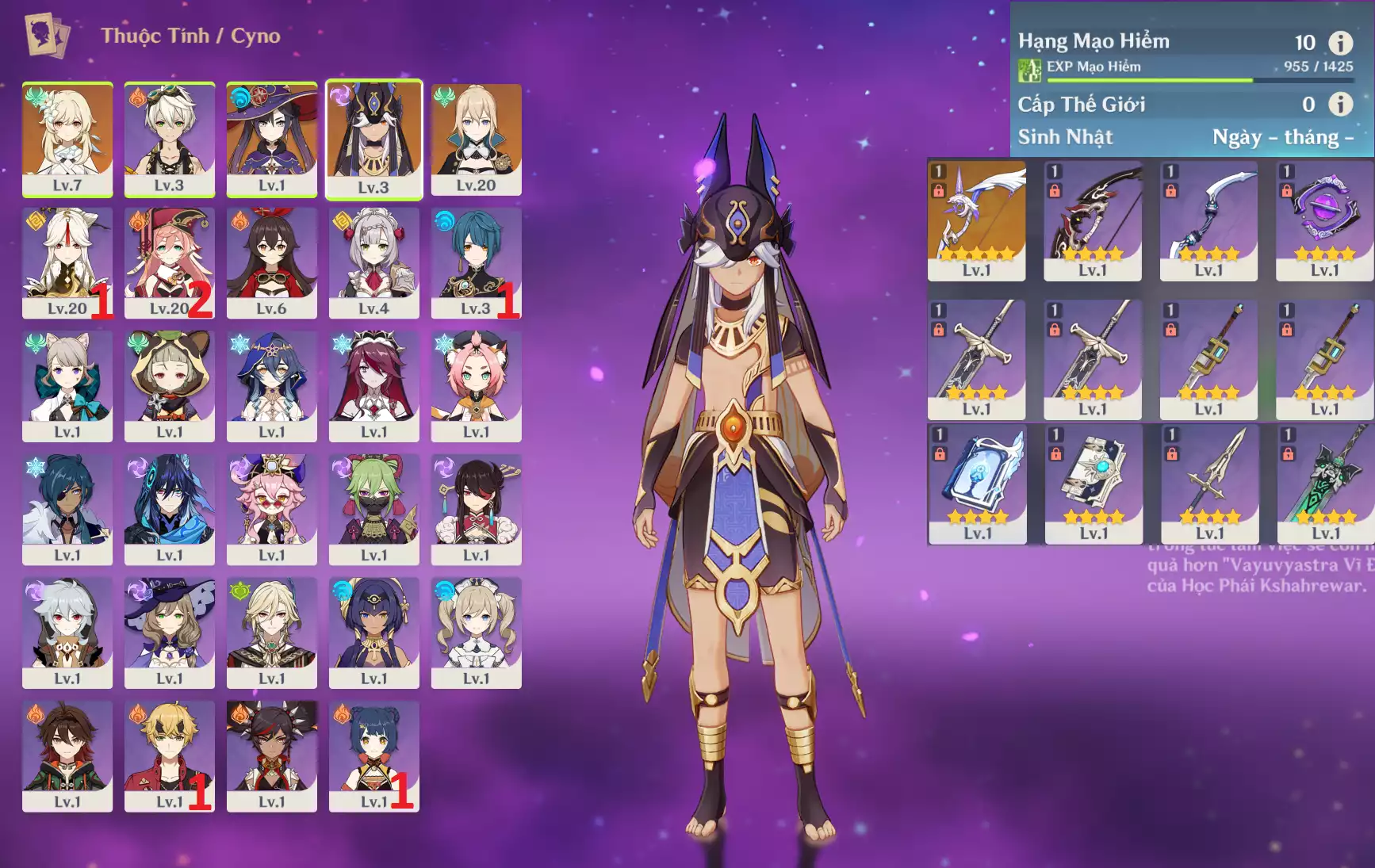 #356377 300,000đ 300,000đ AR level 10 Khu Vực asia Tướng 5* 3 Ar10 : Cyno + Jean + Mona + Amos _ banner nhân vật 45/90 ( chưa set user + sinh nhật ) Tướng : 3 Vũ khí : 1 Chi tiết