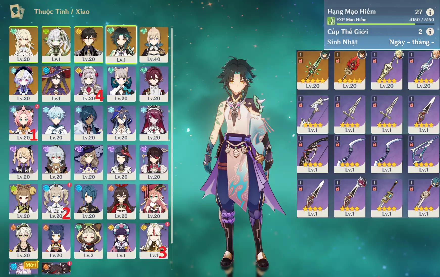#356379 1,500,000đ 1,500,000đ AR level 27 Khu Vực asia Tướng 5* 6 Ar27 : Zhongli * Trấn ( Homa ) + Xiao * Trấn ( HPD ) + Nahida + Mona + Jean + QiQi _ banner nhân vật 35/90 ( chưa set user + sinh nhật ) _ map zin 99% Tướng : 6 Vũ khí : 2 Chi tiết