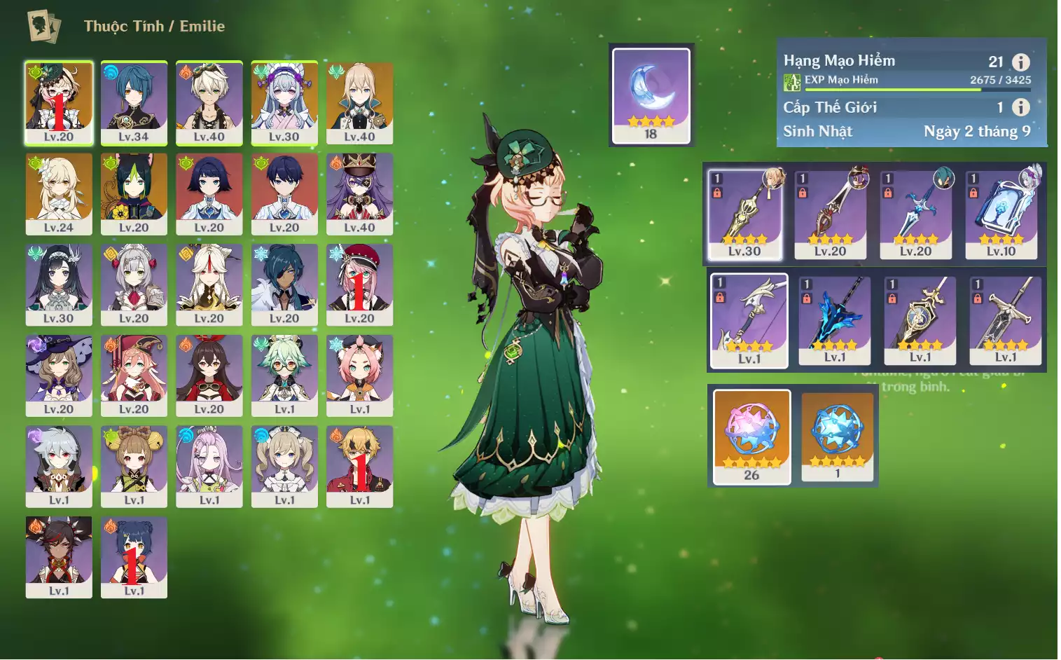 #361838 399,000đ 399,000đ AR level 21 Khu Vực asia Tướng 5* 5 Ar21: Emilie cung mệnh 1 + Mizuki Tighnari Jean bennet + 26 roll hồng , chưa set user Tướng : 5 Vũ khí : 0 Chi tiết