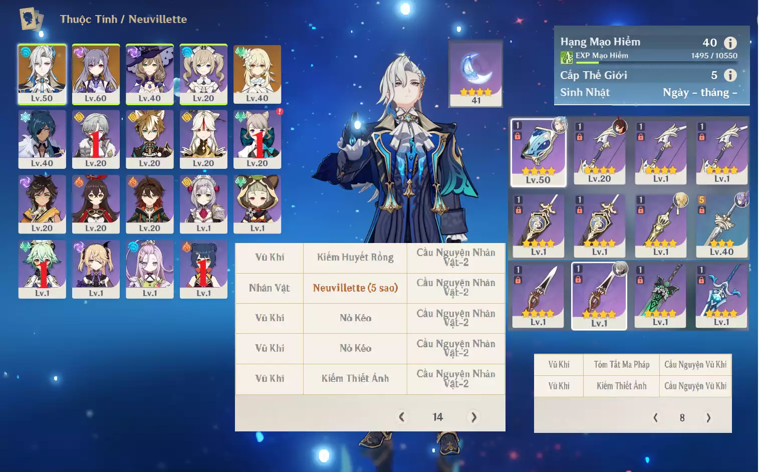 #361839 399,000đ 399,000đ AR level 40 Khu Vực asia Tướng 5* 2 Ar40: Neuvillette + Keqing , banner nhân vật 14 trang sắp nổ, vũ khí 8 trang , chưa set user _ chưa set sinh nhật , map còn zin 95% Tướng : 2 Vũ khí : 0 Chi tiết