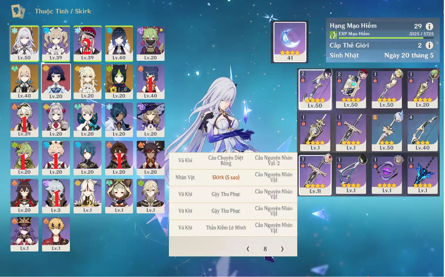 #361840 599,000đ 599,000đ AR level 29 Khu Vực asia Tướng 5* 5 Ar29: Skirk + Yelan + Tighnari Jean bennetC1 , banner nhân vật 8 trang , chưa set user , map còn zin 99% Tướng : 5 Vũ khí : 0 Chi tiết