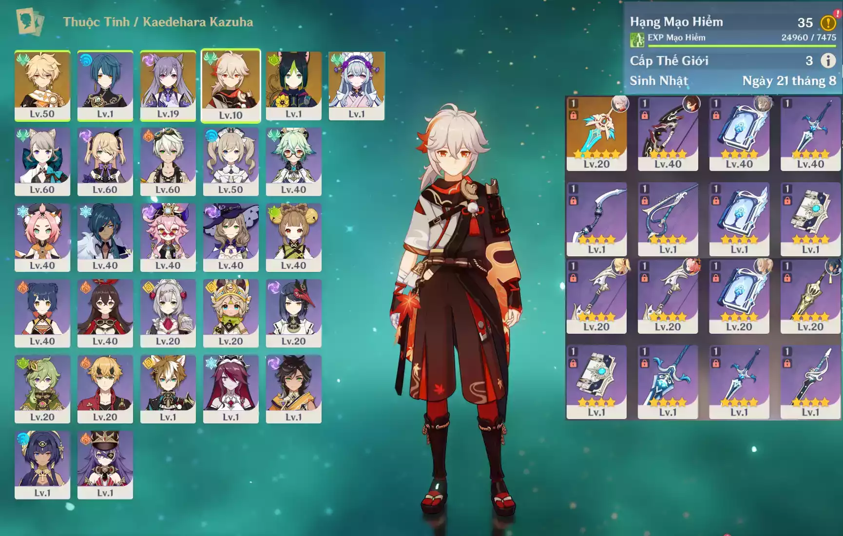 #356271 269,000đ 269,000đ AR level 35 Khu Vực asia Tướng 5* 5 Ar35 : Kazuha + TKK + Keqing + Tighnari + Mizuki _ bennetC1 xingqiu _ banner nhân vật 45/90 ( chưa set user ) Tướng : 5 Vũ khí : 1 Chi tiết