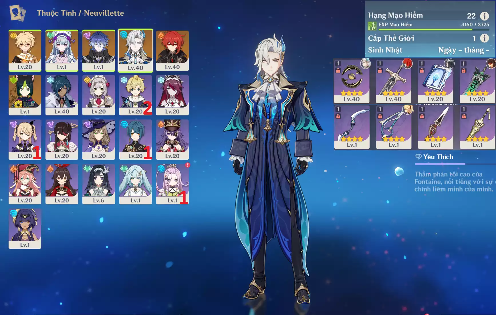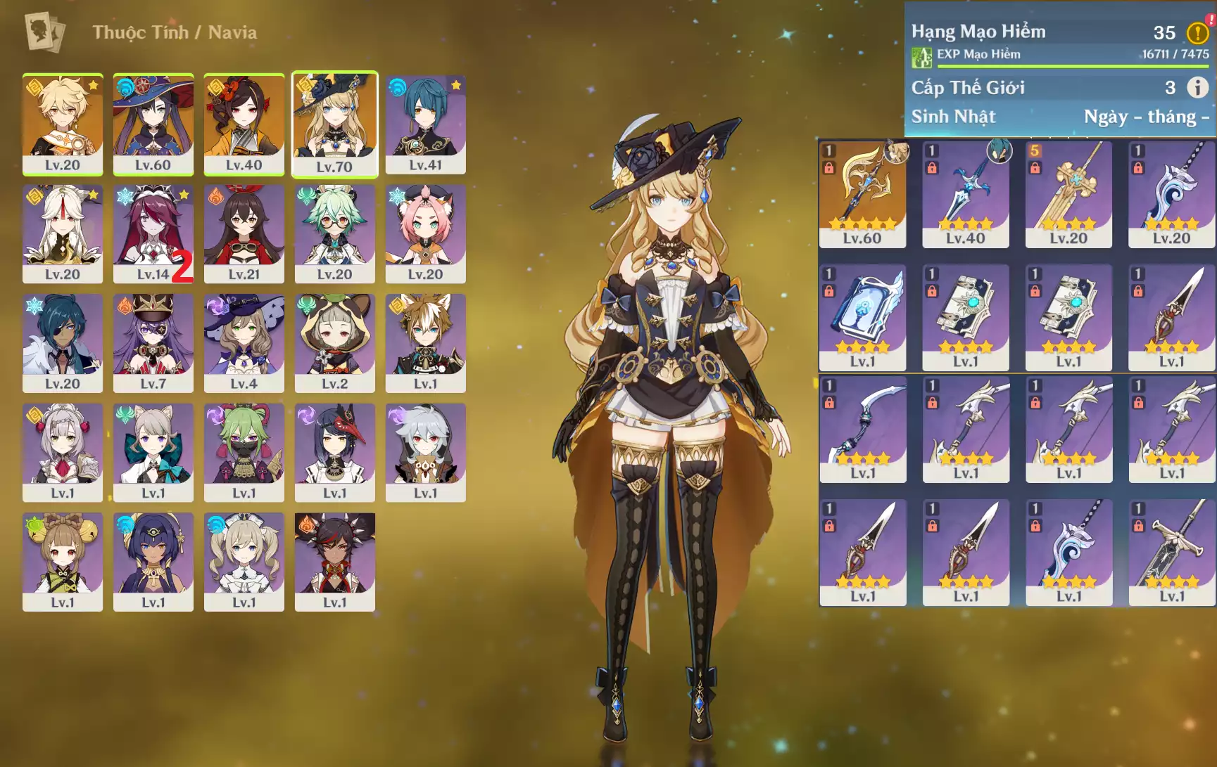 #356316 899,000đ 899,000đ AR level 35 Khu Vực asia Tướng 5* 3 Ar35 : Navia + Trấn ( Phán Quyết ) + Chiori + Mona _ banner nhân vật 50/90 ( acc trắng thông tin _ chưa set email + sinh nhật ) _ map zin 99% Tướng : 3 Vũ khí : 1 Chi tiết