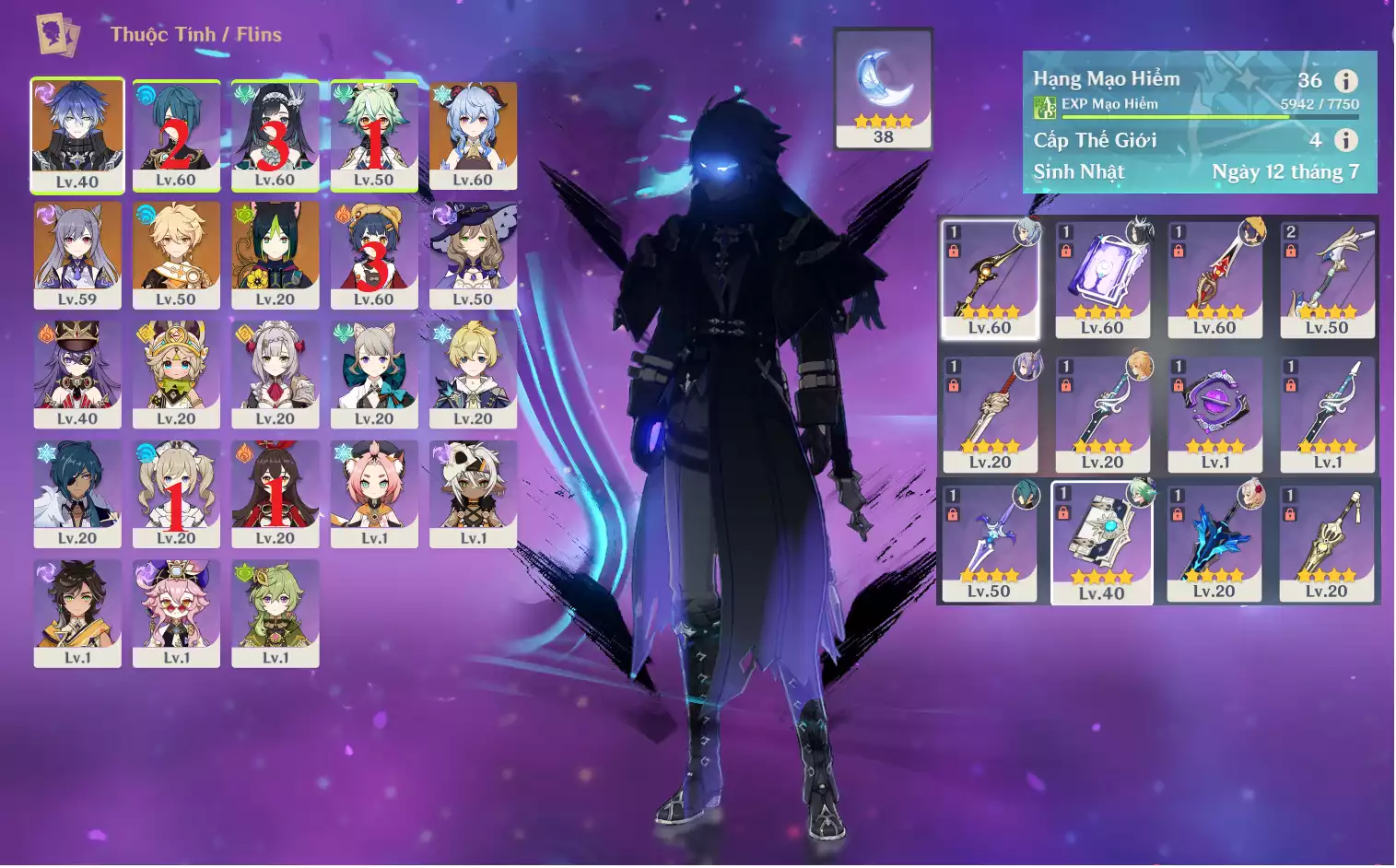 #356319 499,000đ 499,000đ AR level 36 Khu Vực asia Tướng 5* 4 Ar36: Char mới Flins + Ganyu + tighnari keqing bennet main NAM, banner nhân vật 3 trang , chưa set user Tướng : 4 Vũ khí : 0 Chi tiết
