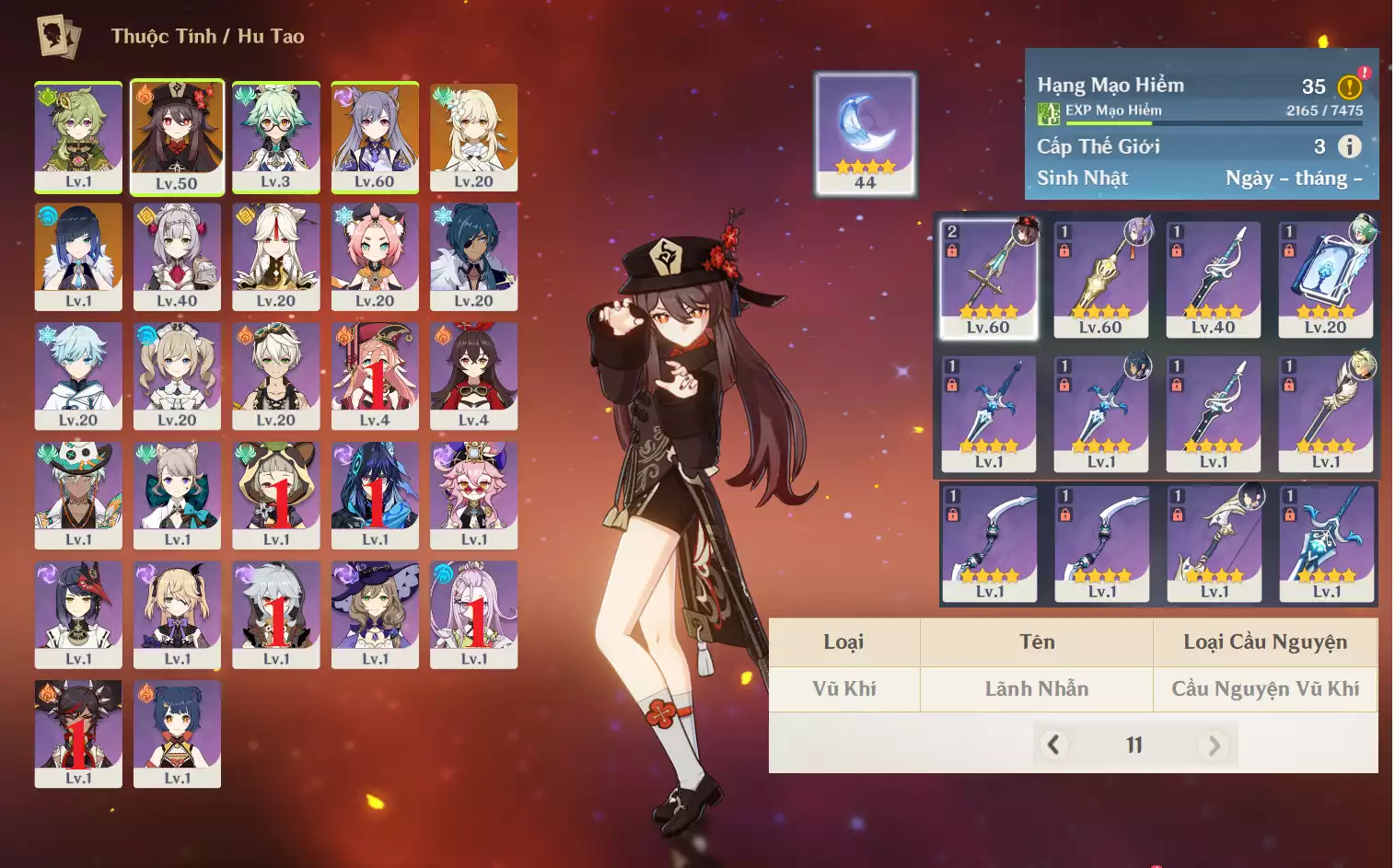 #356322 499,000đ 499,000đ AR level 35 Khu Vực asia Tướng 5* 4 Ar35: combo hot Hutao + Yelan + keqing bennet , banner vũ khí 11 trang sắp nổ , chưa set user _ chưa set sinh nhật Tướng : 4 Vũ khí : 0 Chi tiết