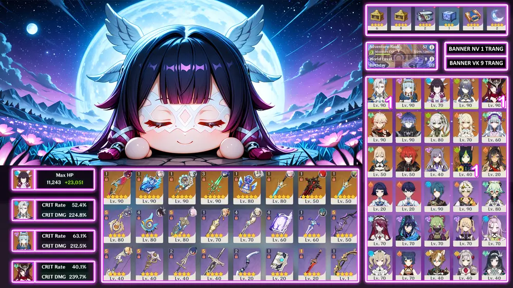 #358883 1,000,000đ 1,000,000đ AR level Khu Vực asia Tướng 5* 1 [Nguồn CN] Check Build qua UID trong ảnh - Raiden C6R1 Tướng : 1 Vũ khí : 1 Chi tiết