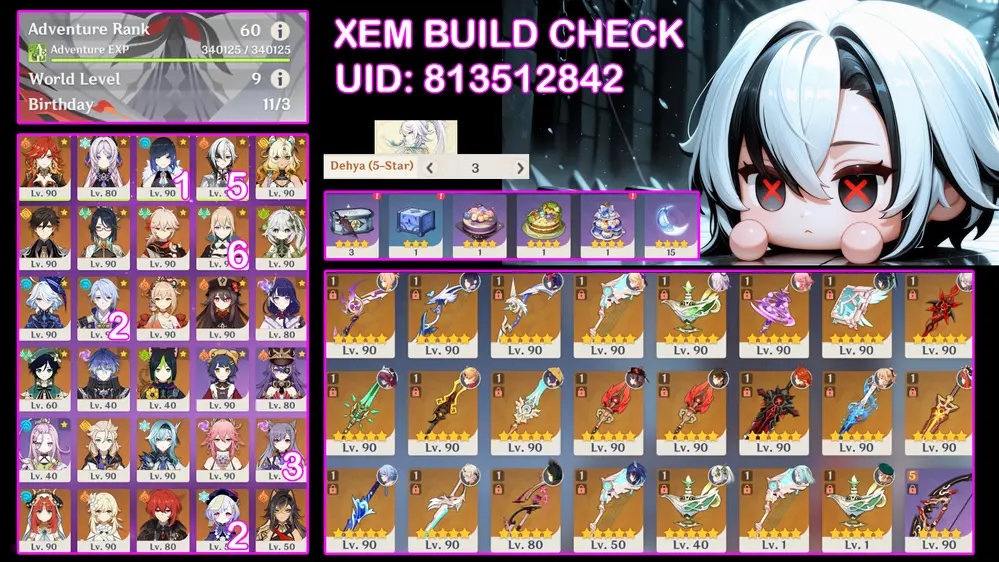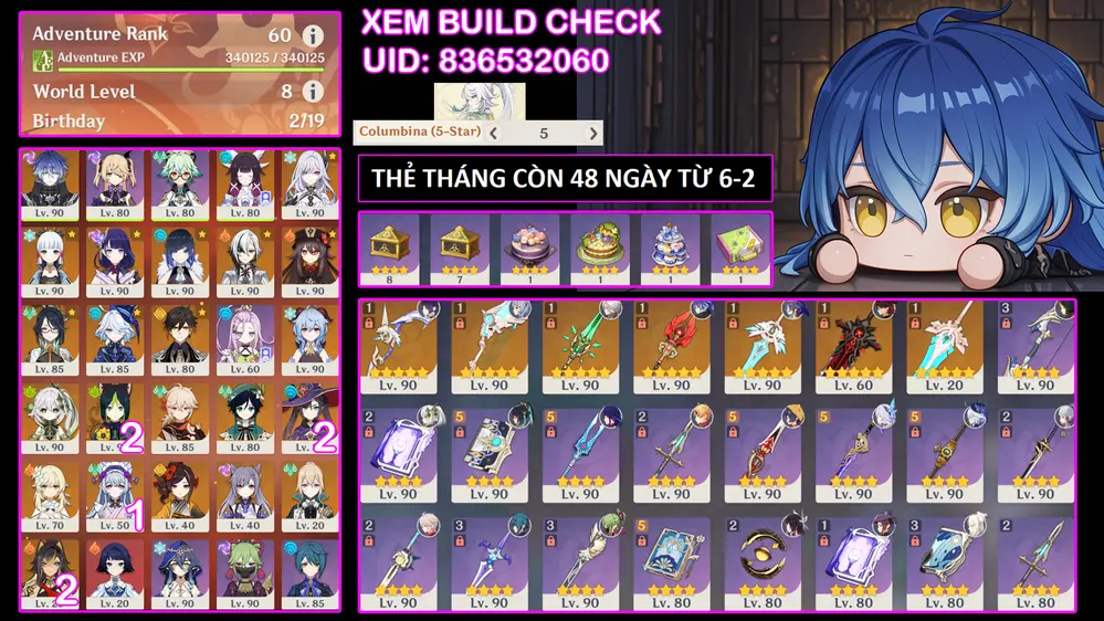 #359526 1,650,000đ 1,650,000đ AR level 60 Khu Vực asia Tướng 5* 25 AC VIP nhiều char hot đã buid ổn áp map gần như full cho ng chs hệ lười , có yelan skin Tướng : 25 Vũ khí : 10 Chi tiết