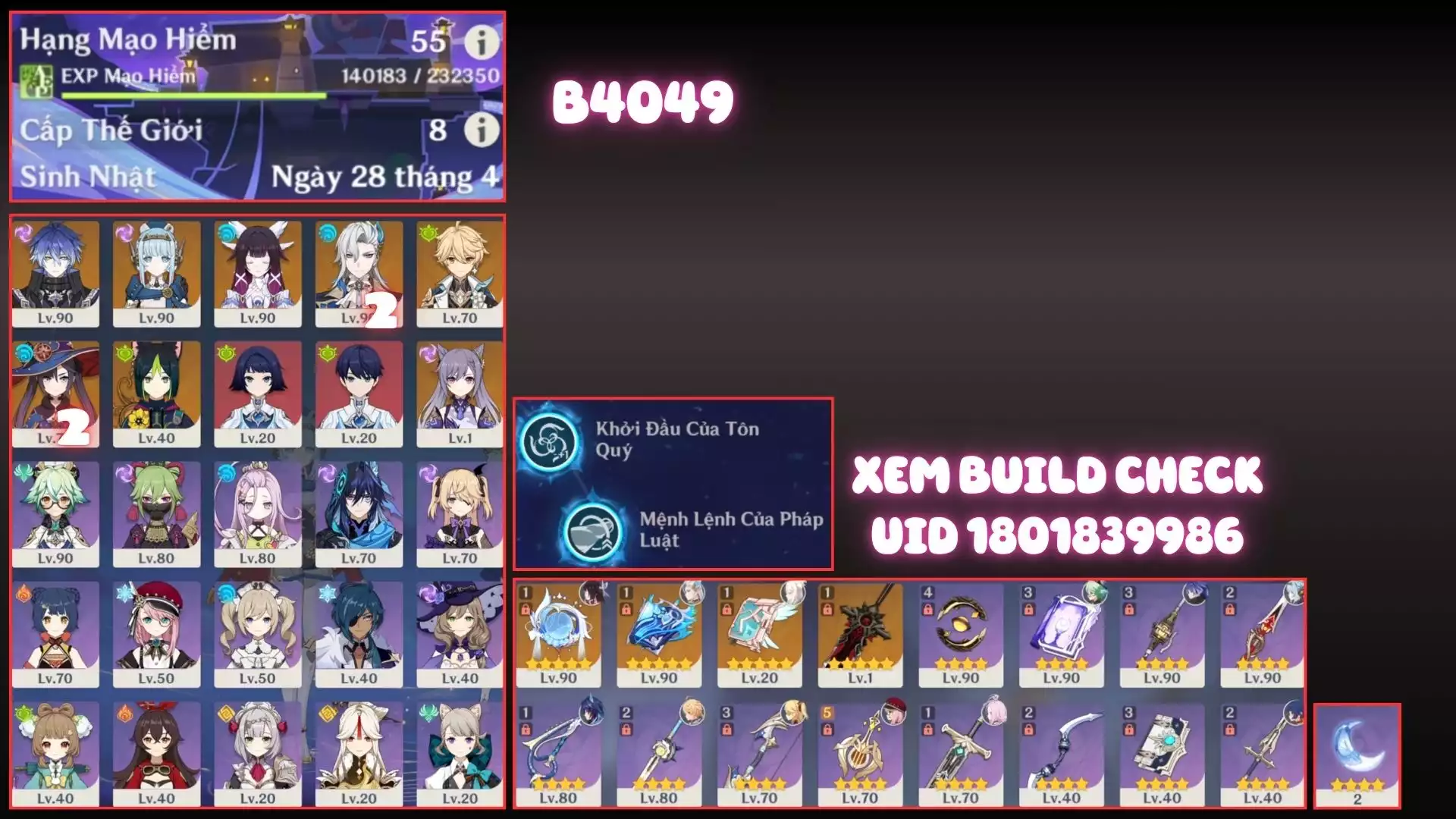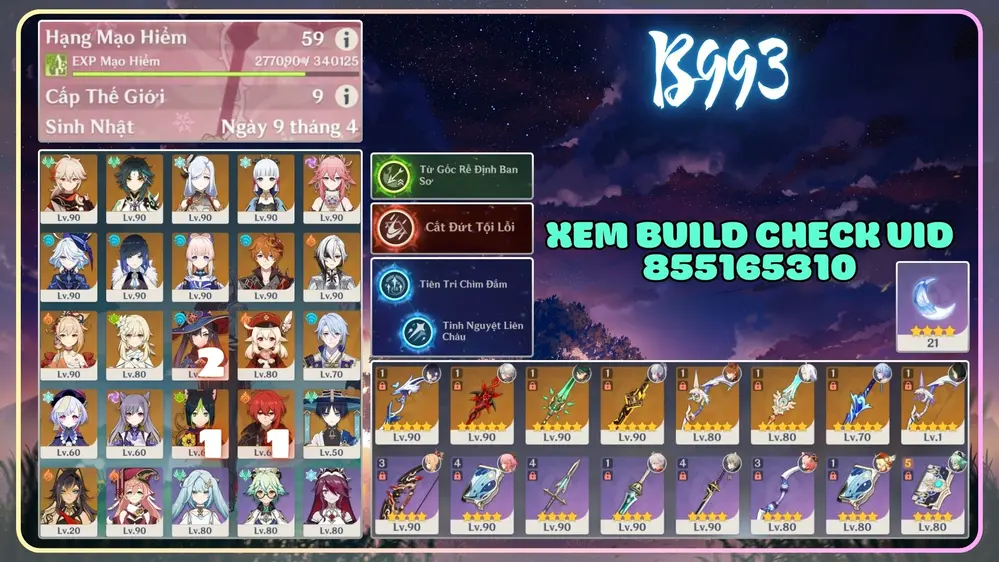 Acc Vip Cấp Cao Genshin