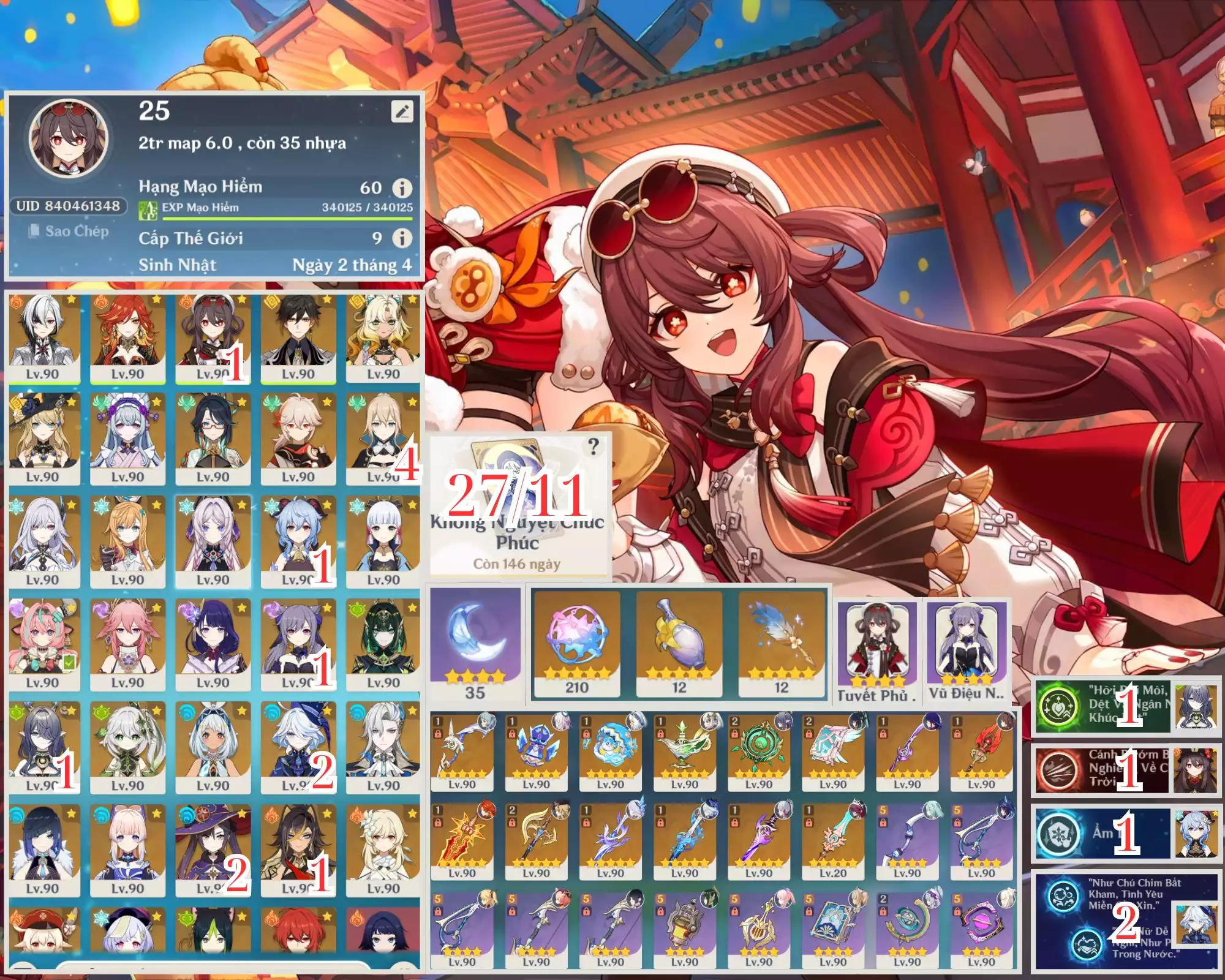 #357729 42,000,000đ 42,000,000đ AR level 60 Khu Vực asia Tướng 5* 33 AC VIP nguồn CN team meta có đầy đủ , dư 210 roll thẻ tháng còn 140ngay , cực nhiều đồ cho ae chơi GÓP 1/1/2026 Tướng : 33 Vũ khí : 14 Chi tiết