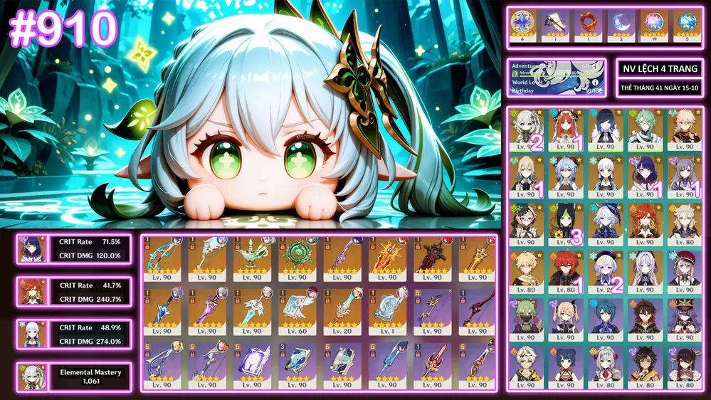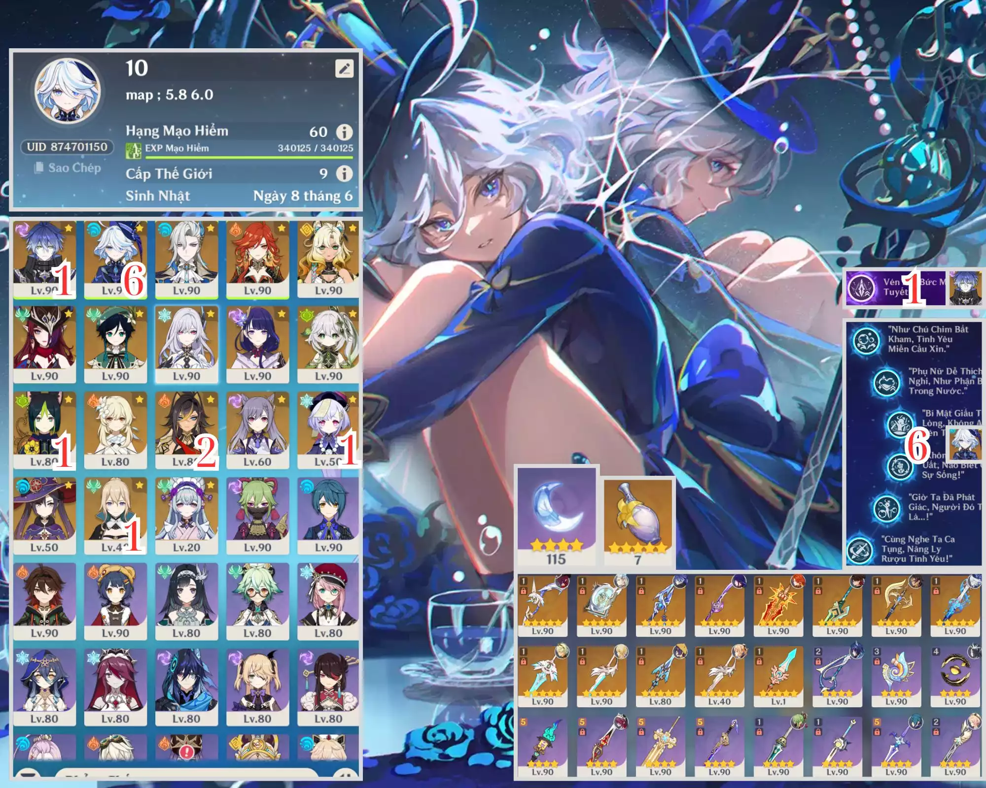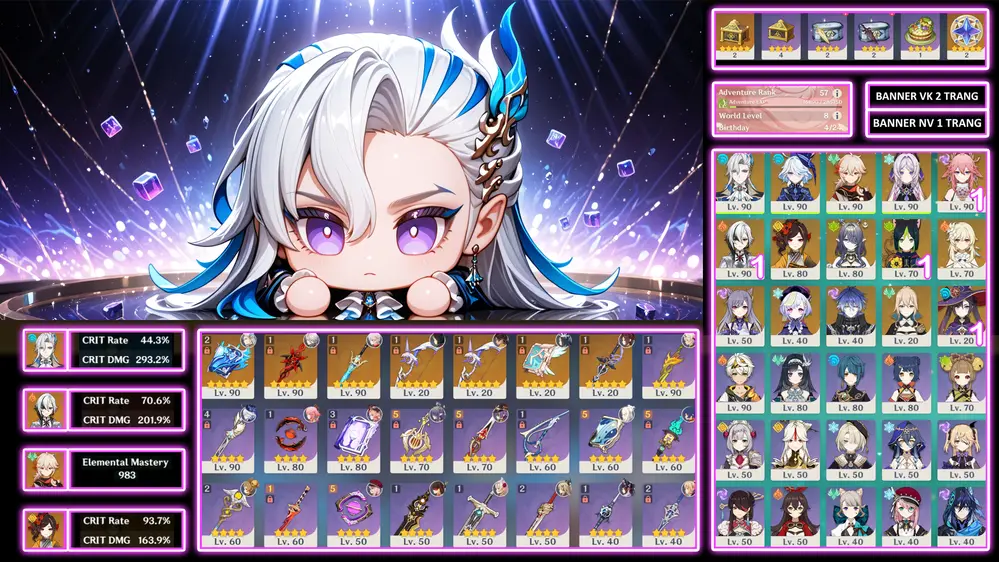 #356540 9,999,999đ 9,999,999đ AR level 60 Khu Vực asia Tướng 5* 16 AC VIP furina c6r1 cùng đồng bọn kẹp toàn char meta cho ae GÓP 17/11 Tướng : 16 Vũ khí : 11 Chi tiết
