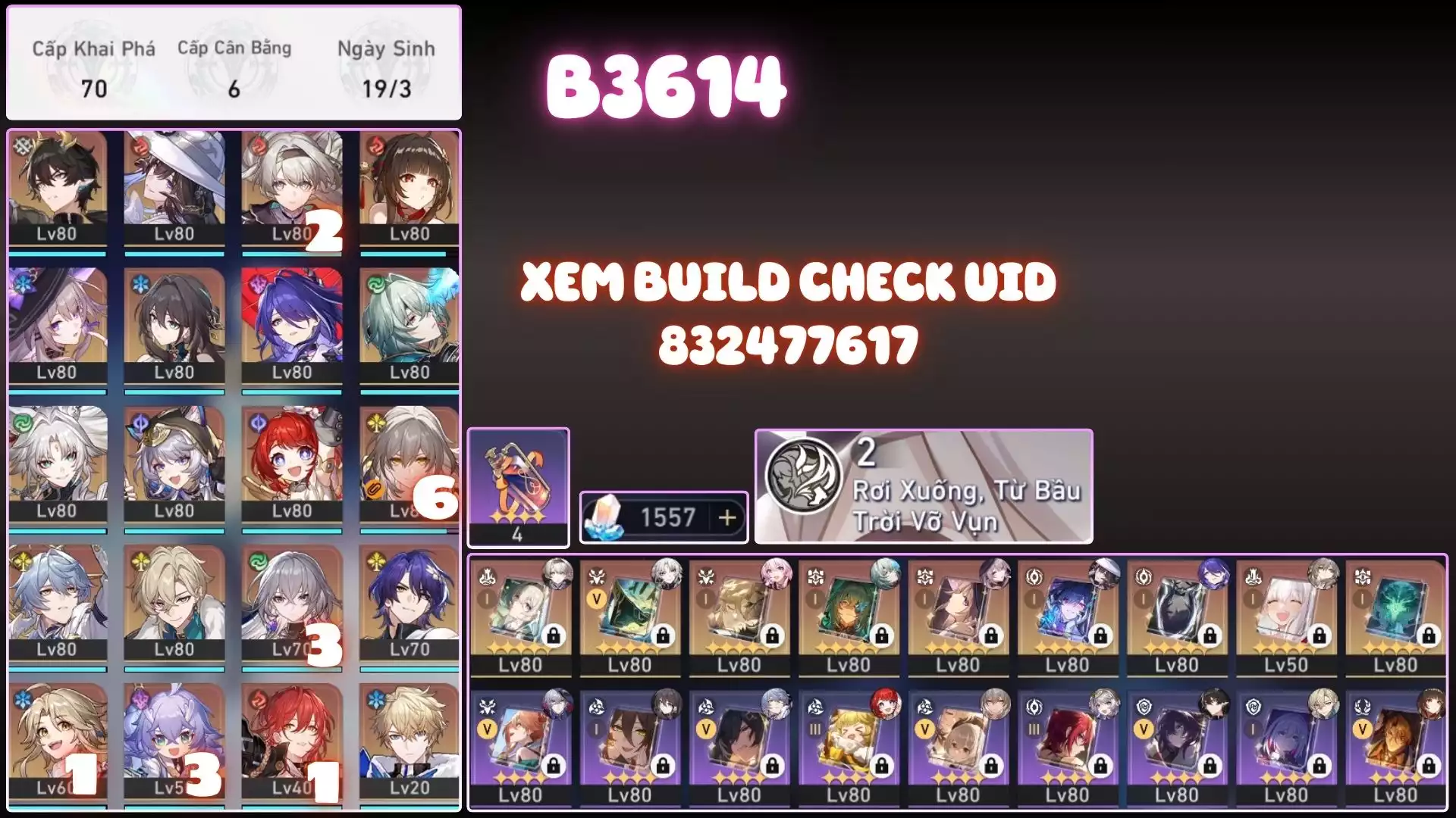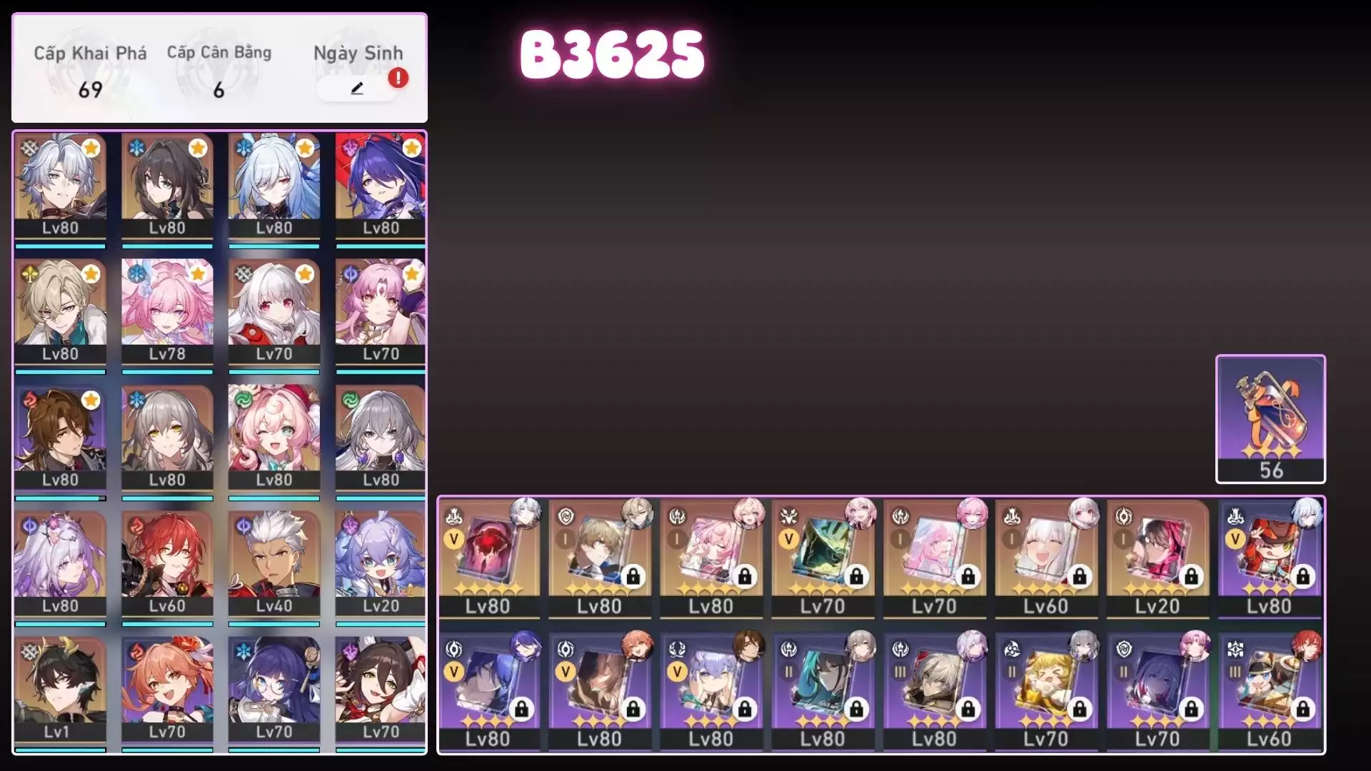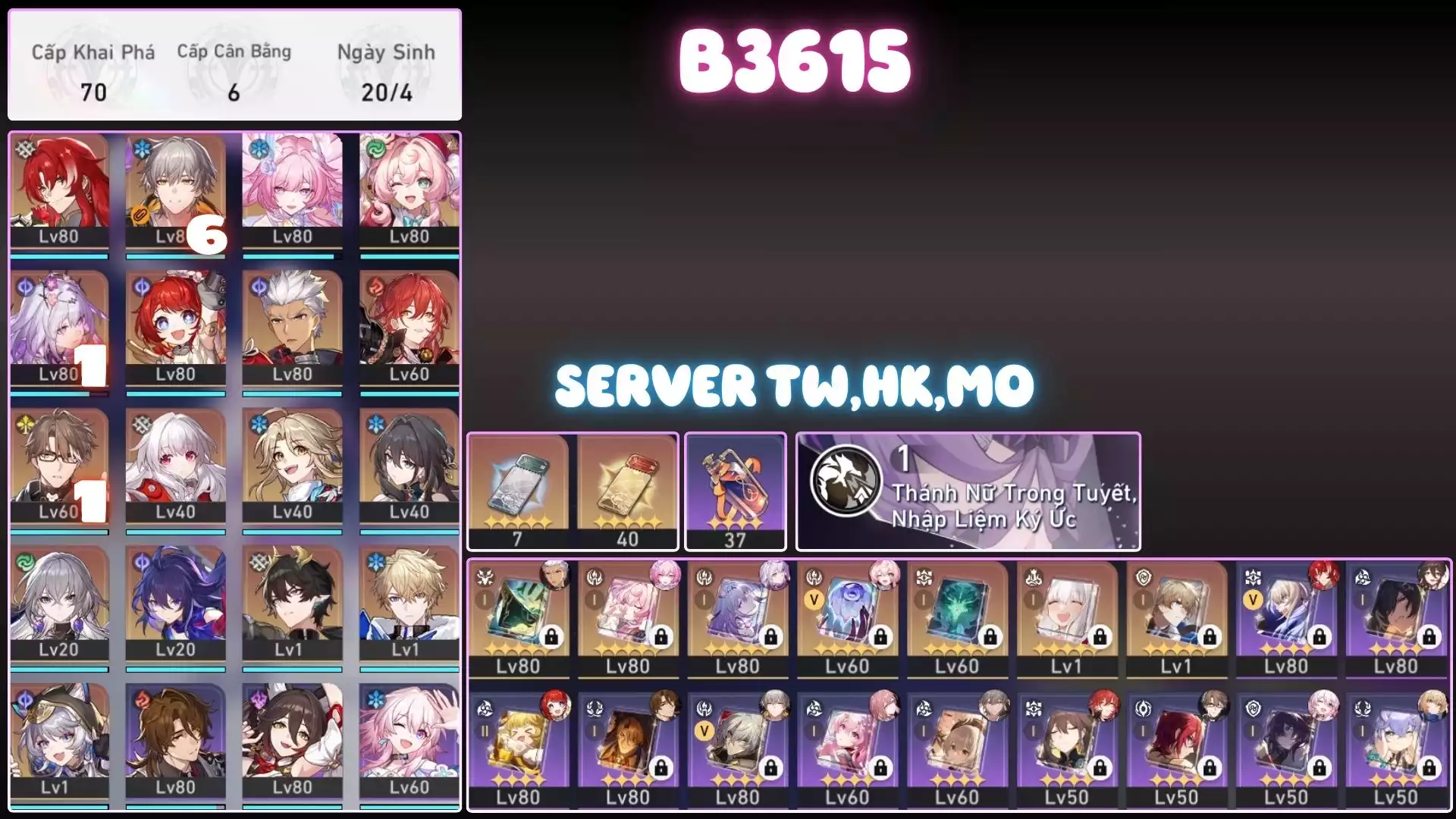 #88043 200,000đ AR level 70 Khu Vực tw,hk,mo Tướng 5* 4 Team Castorice Server Tw-HK Tướng : 4 Vũ khí : 2 Chi tiết