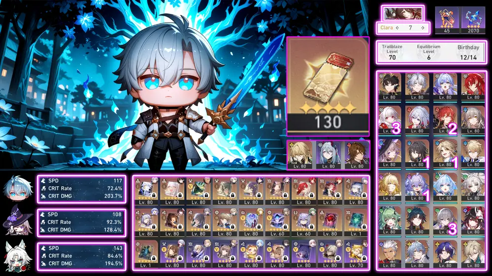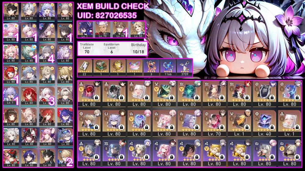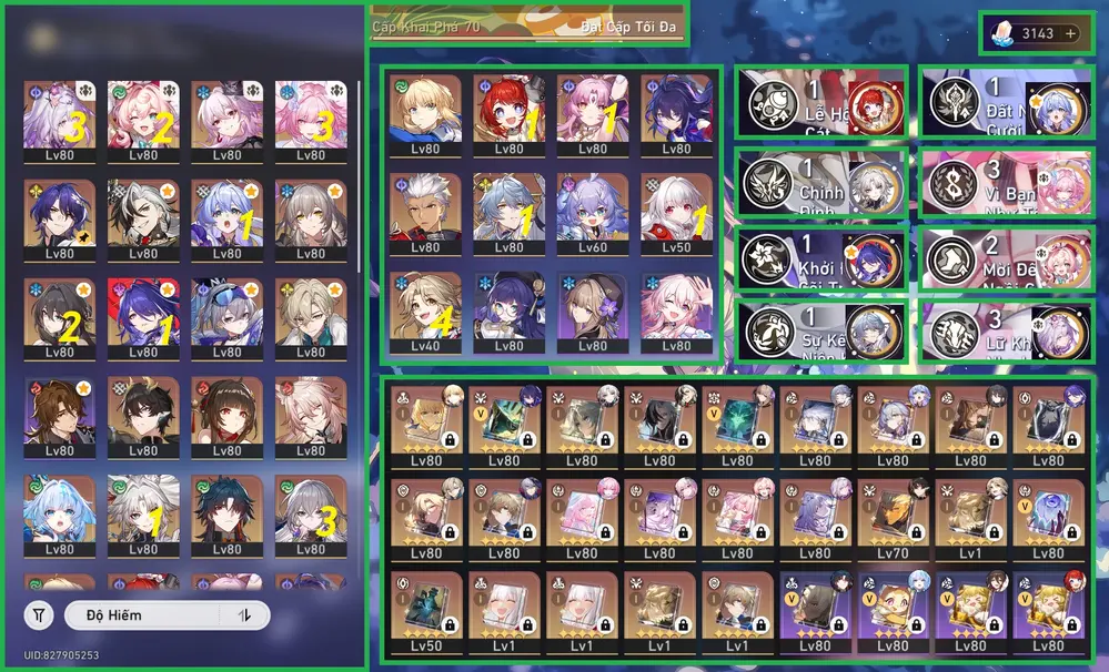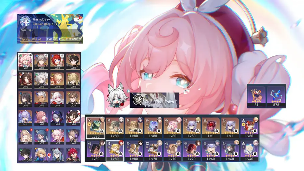 #88044 250,000đ AR level Khu Vực asia Tướng 5* 11 Feixiao E1S1, Hyacine Trấn + Tribie, Fugue, Mydei. Acc Dư 31 Nhựa ( Acc Quên User Không Ảnh Hưởng ) Tướng : 11 Vũ khí : 7 Chi tiết