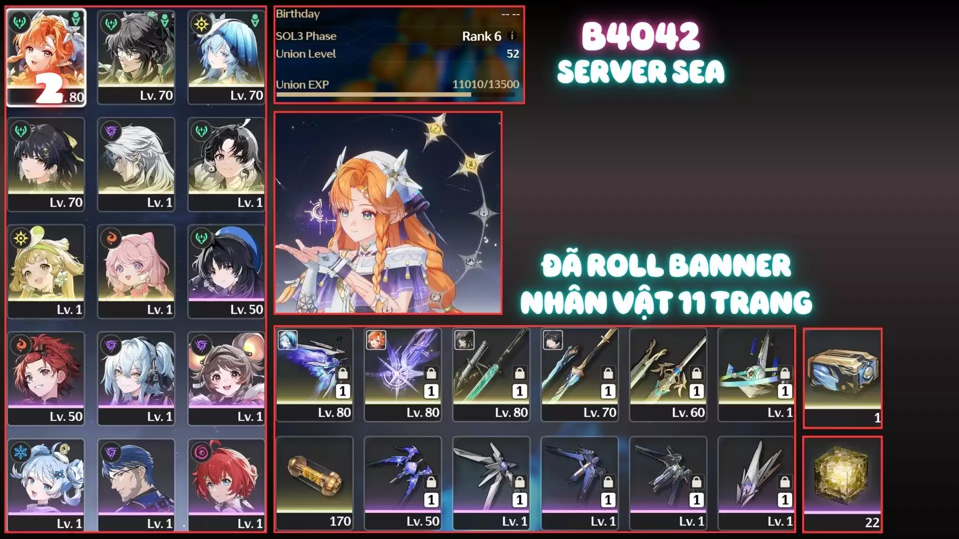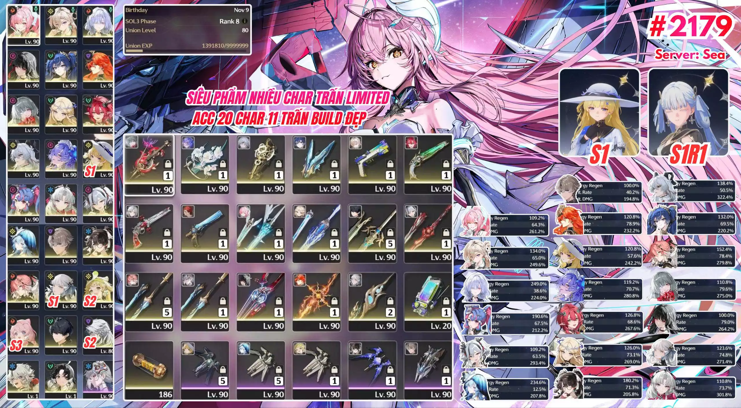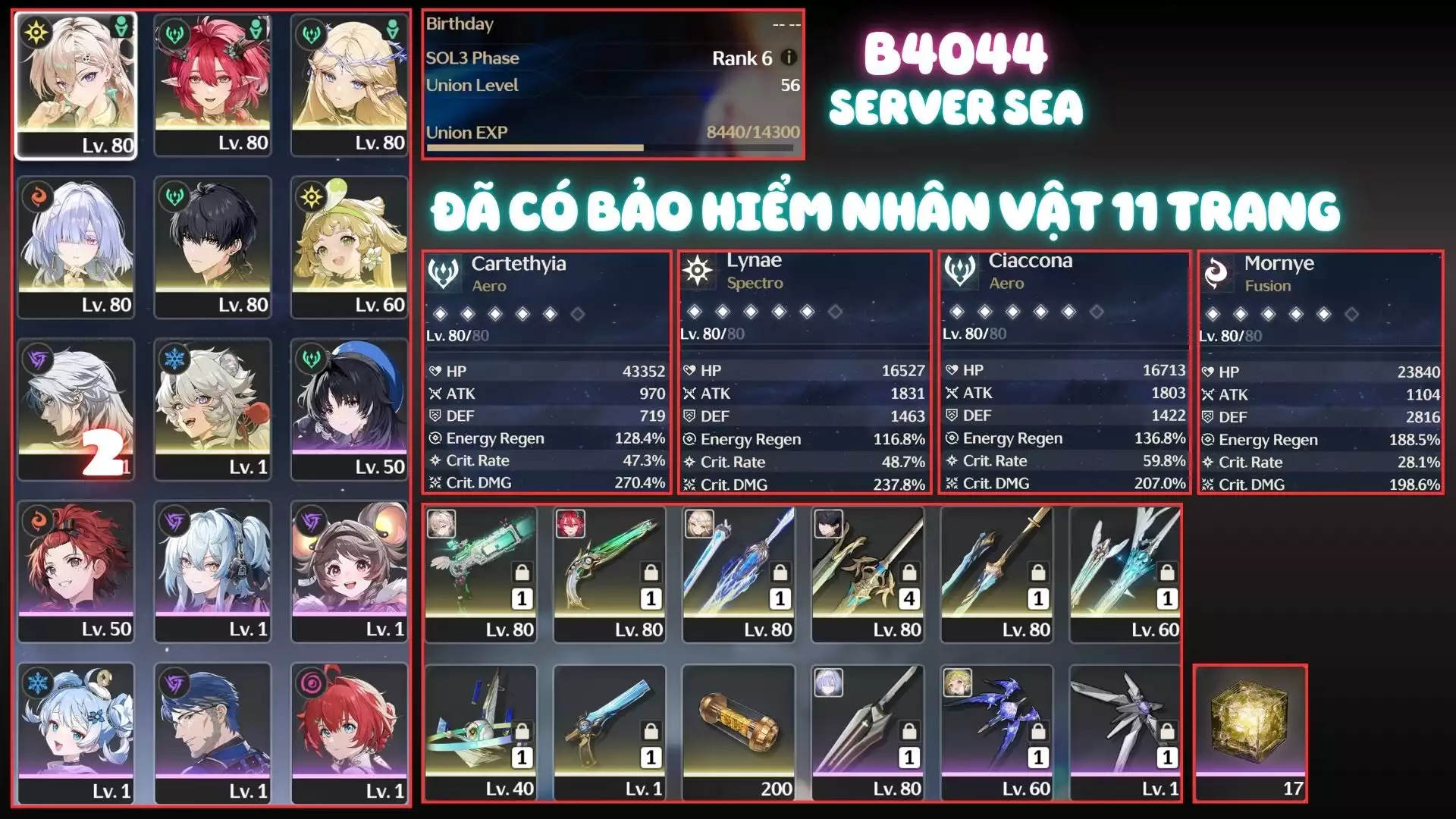 #14452 4,000,000đ AR level 80 Khu Vực asia Tướng 5* 20 [Siêu Phẩm FULL NHIỀU TEAM META S CỦA GAME CÒN NHIỀU MAP + EVENT ] TH-919 Aemeath (Trấn) + Lynae + Mornye + Chisa (Trấn) + Iuno + Augusta (Trấn) + Phrolova (Trấn) + Carterthyia (Trấn) + Ciaccona (Trấn) + Zani (Trấn) + Cantarella + Phoebe C1 + Roccia + Carlotta (Trấn) + Camellya (Trấn) + Shorekeeper + Xiangli Yao + Zhezhi (Trấn) + Changli + Jinhsi C1S2 Tướng : 20 Vũ khí : 11 Chi tiết