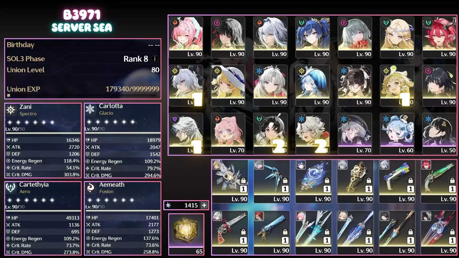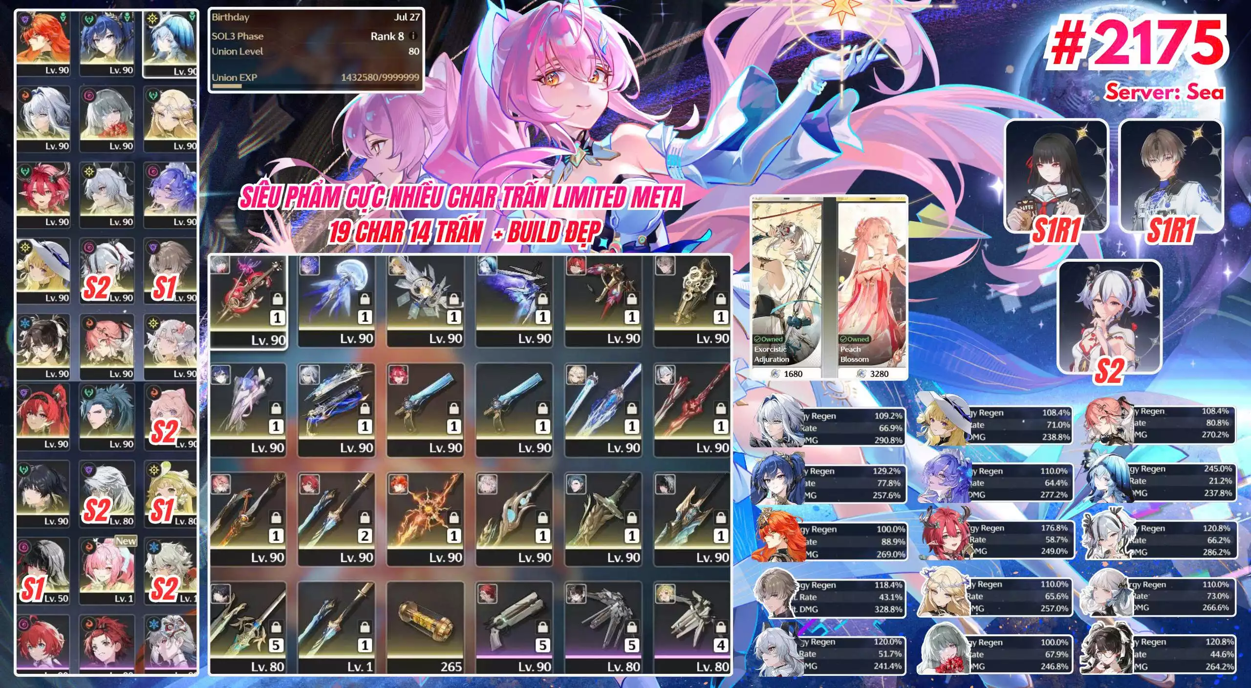 [Siêu Phẩm Cày Tay 100% Siêu Rẻ Nhiều Team Hot Meta ] TH-894 Augusta (Trấn) + Iuno + Shorekeeper (Trấn) + Galbrena (Trấn) + Phrolova (Trấn) + Carterthyia (Trấn) + Ciaccona + Zani (Trấn) + Cantarella (Trấn) + Phoebe (Trấn) + Camellya C2 (Trấn) + Yao C1 (Trấn) + Zhezhi + Changli (Trấn) + Jinhsi + Skin (Trấn) + Yilin + Jiyan (Trấn) + Chisa C1 + Aemeath