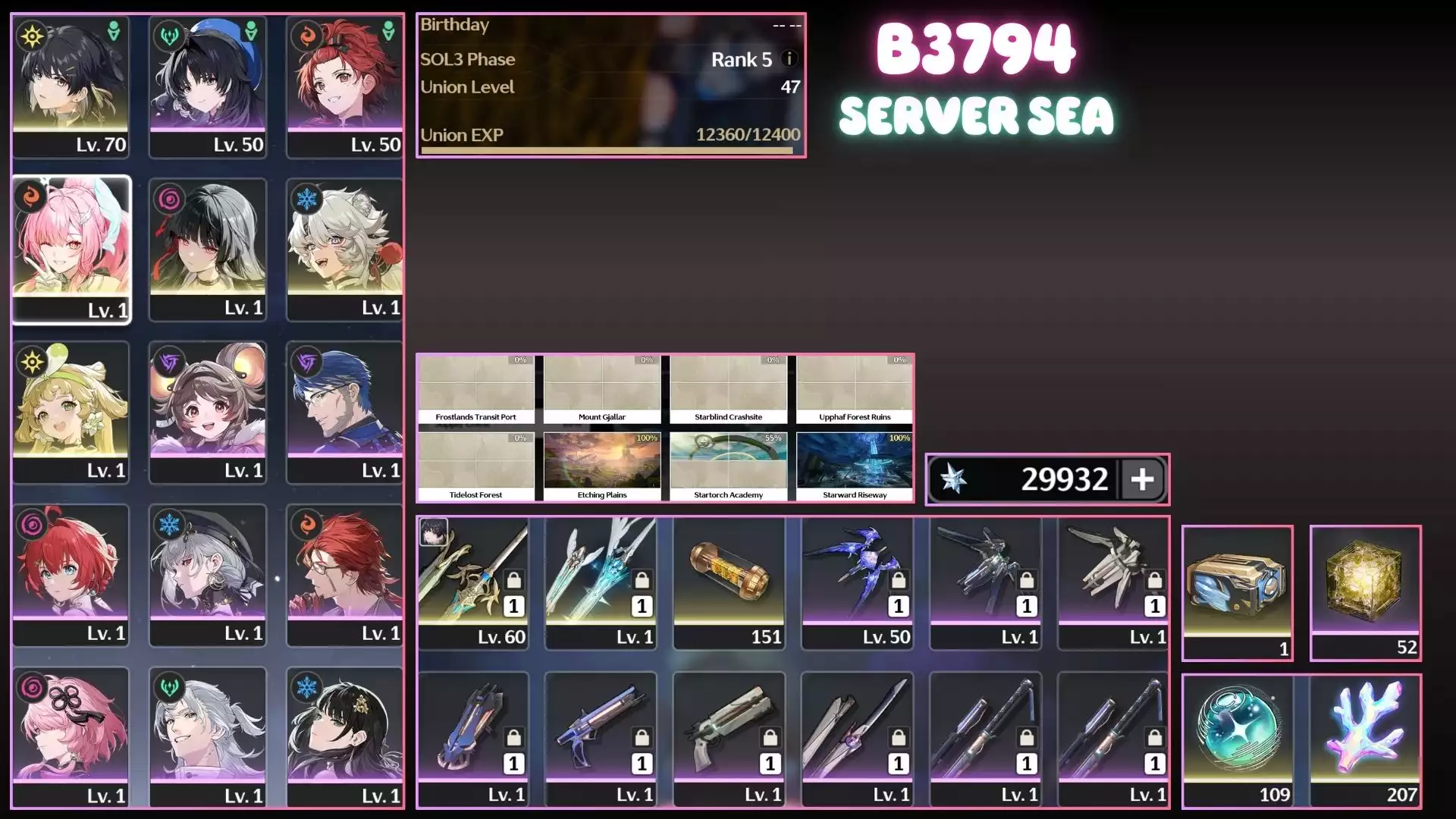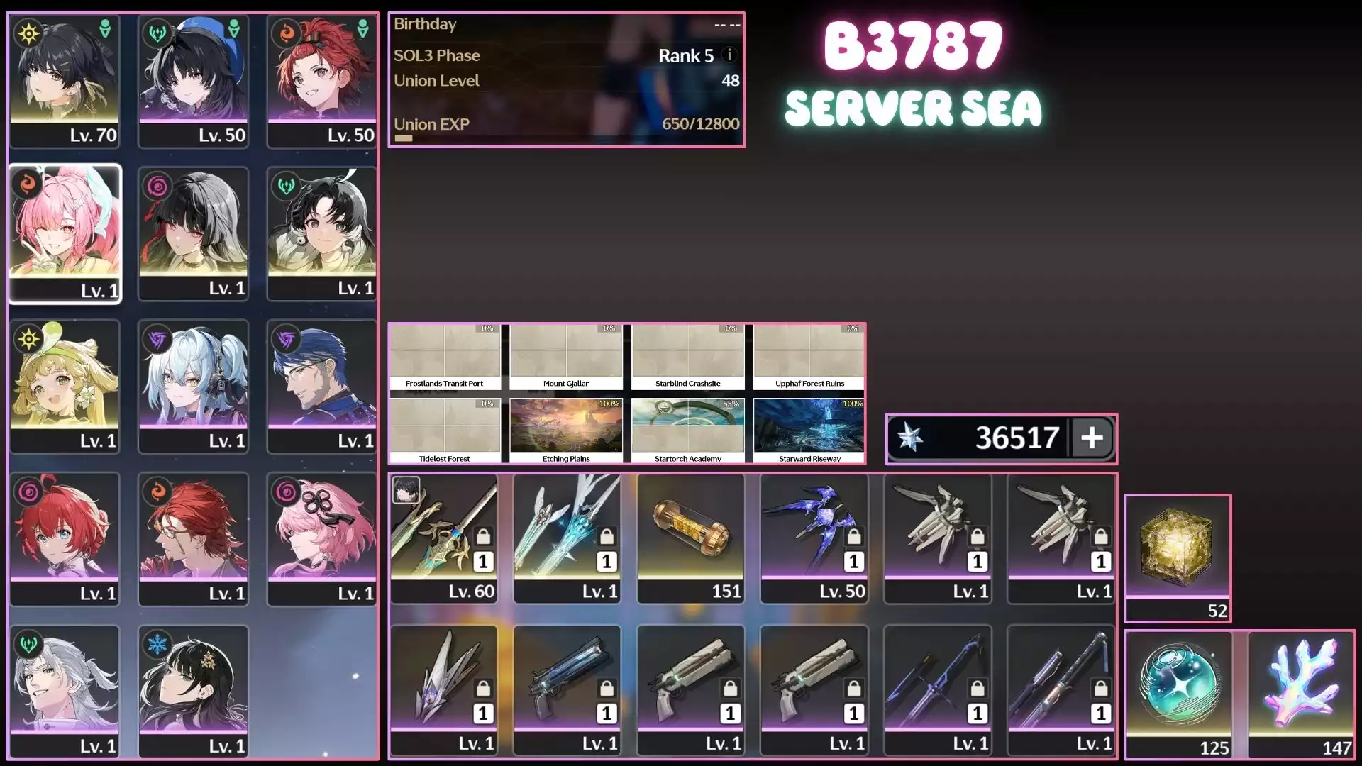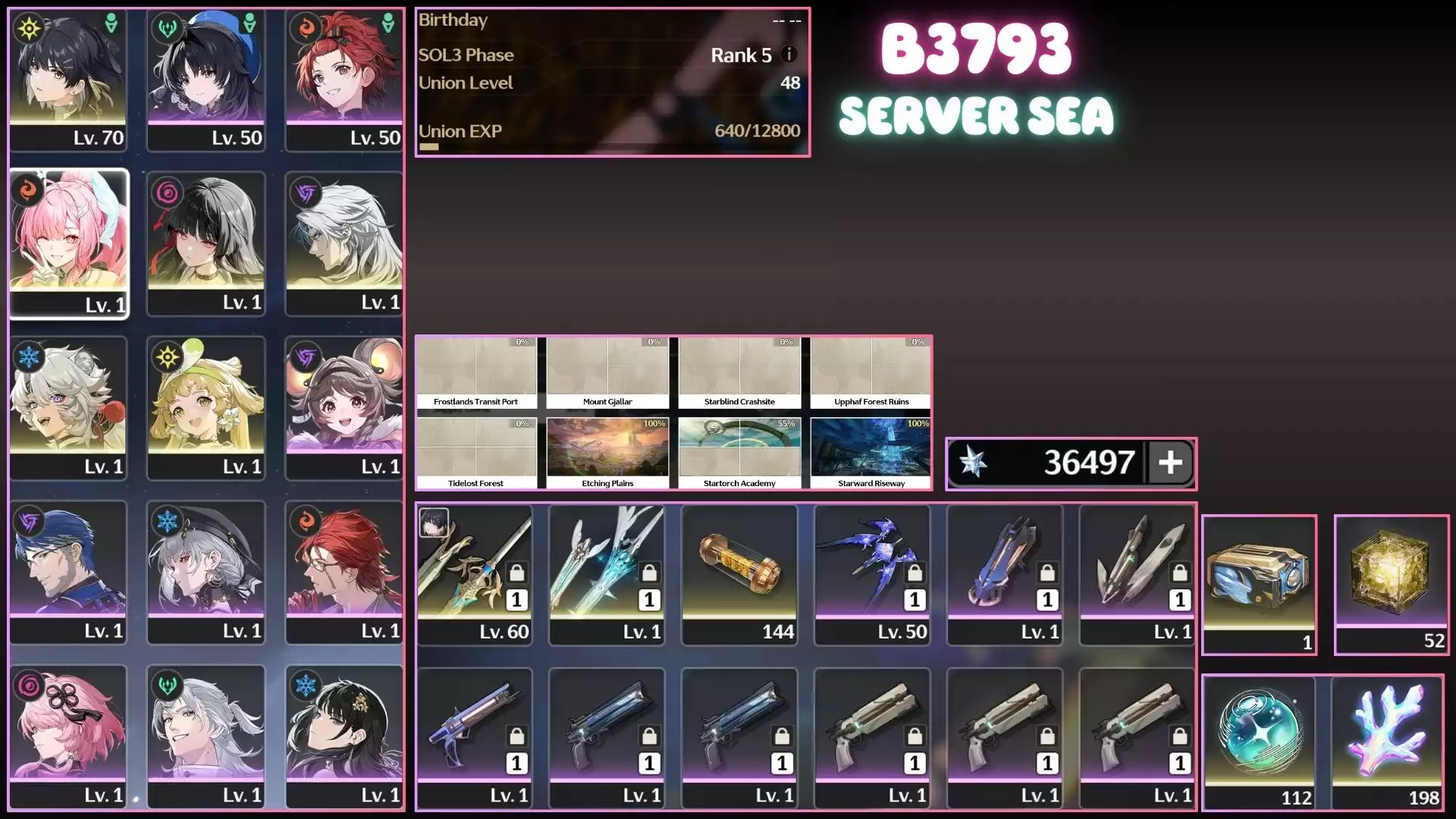 #14017 195,000đ AR level 47 Khu Vực asia Tướng 5* 2 Aemeath Trấn, Chisa ( 51k Đá, 123 San Hô ) Tướng : 2 Vũ khí : 1 Chi tiết