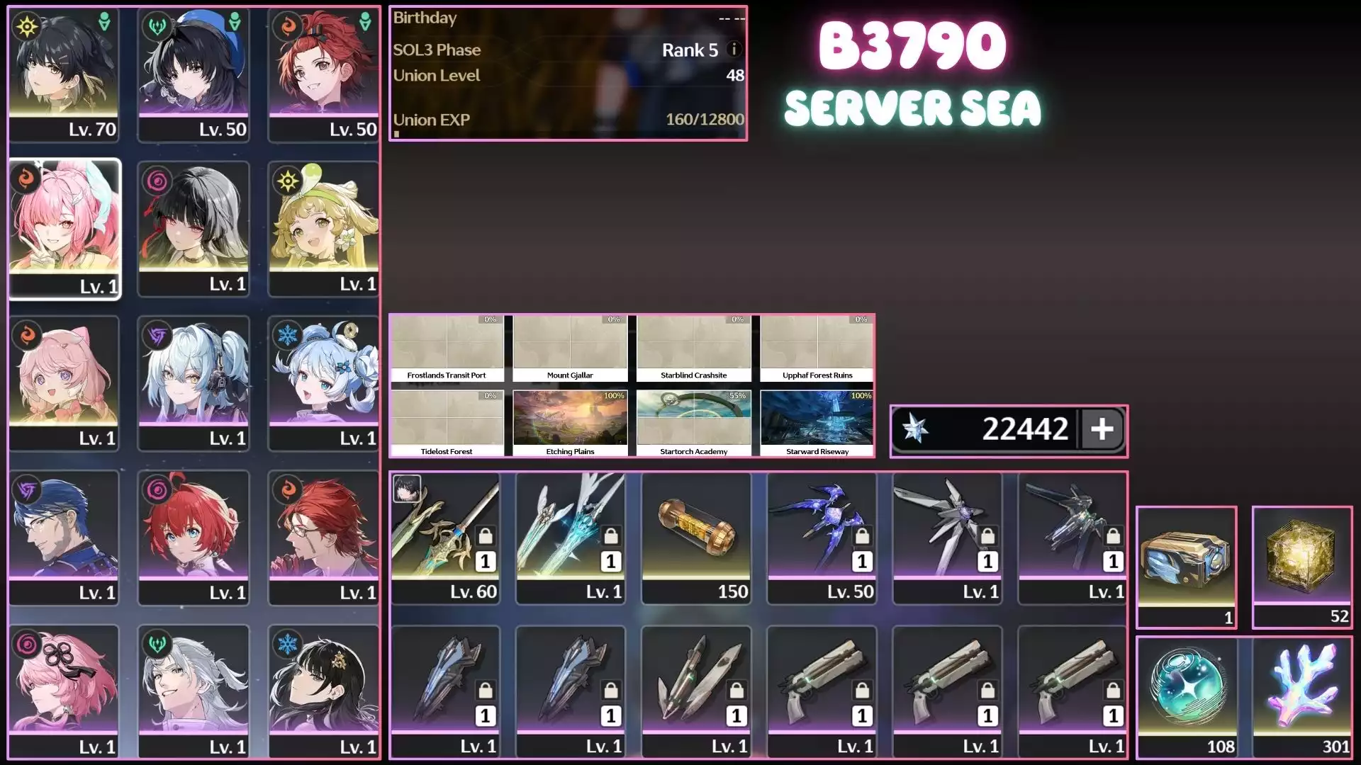 #14018 120,000đ AR level 48 Khu Vực asia Tướng 5* 2 Aemeath Trấn, Chisa ( 19k Đá, 282 San Hô ) Tướng : 2 Vũ khí : 1 Chi tiết