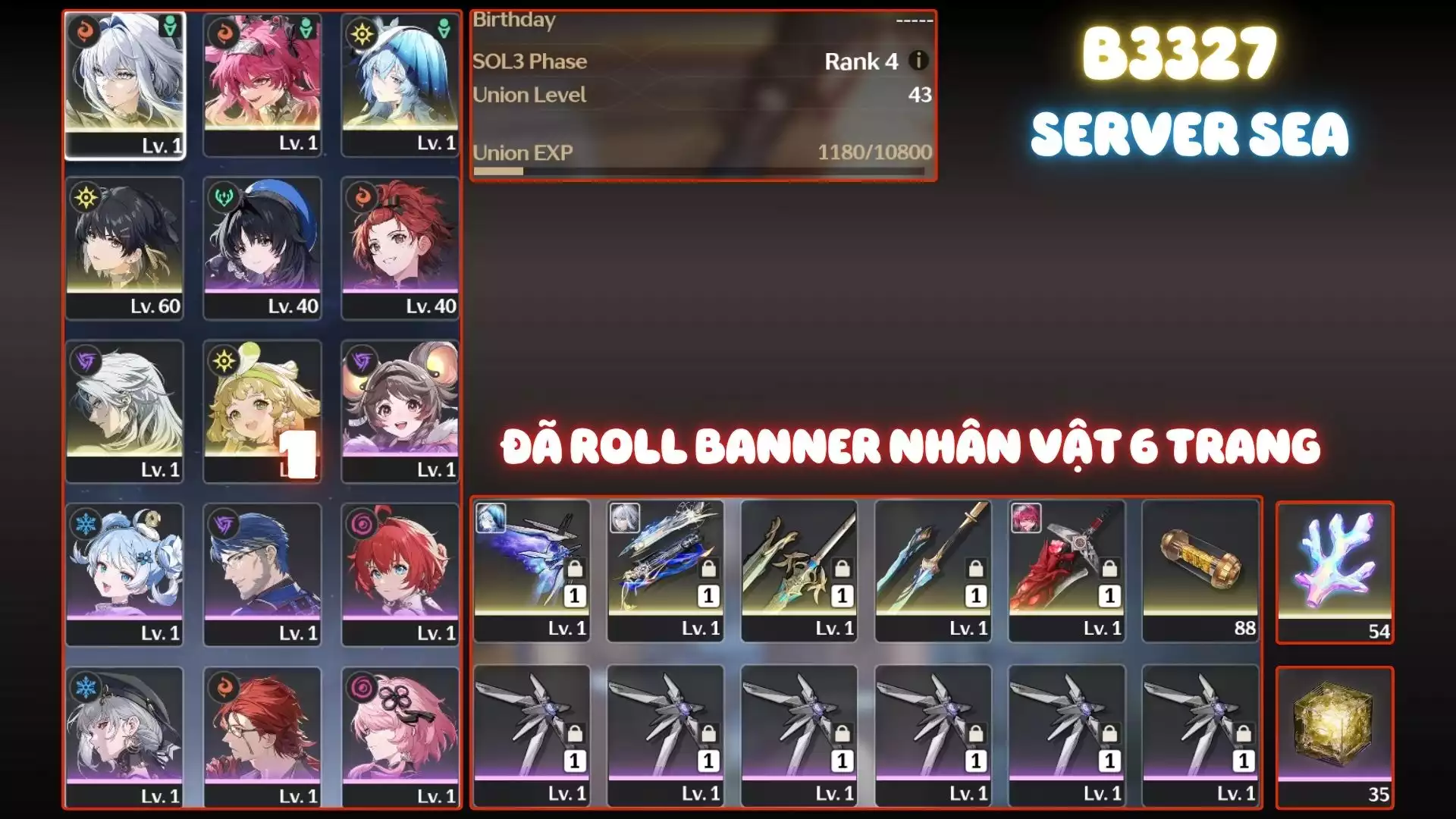 #12313 500,000đ AR level 43 Khu Vực asia Tướng 5* 1 Galbrena Trấn, Lupa Trấn, Shore Trấn Tướng : 1 Vũ khí : 0 Chi tiết