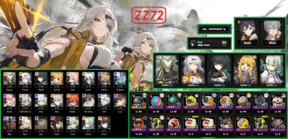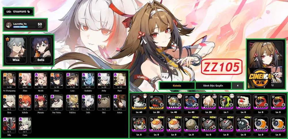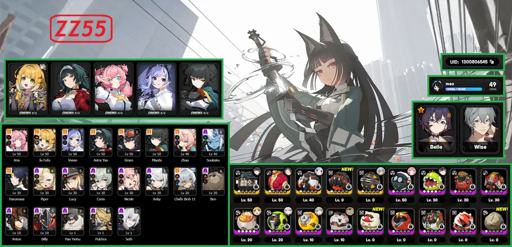 #14487 500,000đ AR level Khu Vực asia Tướng 5* 8 Acc vip Zenles Zone Zero chưa user Tướng : 8 Vũ khí : 6 Chi tiết